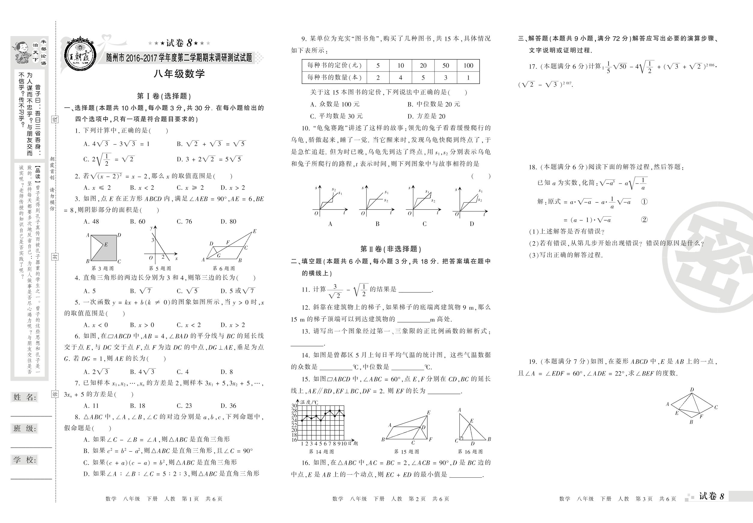 2016-2017学年第二学期随州市八年级数学试卷(人教版)【8】