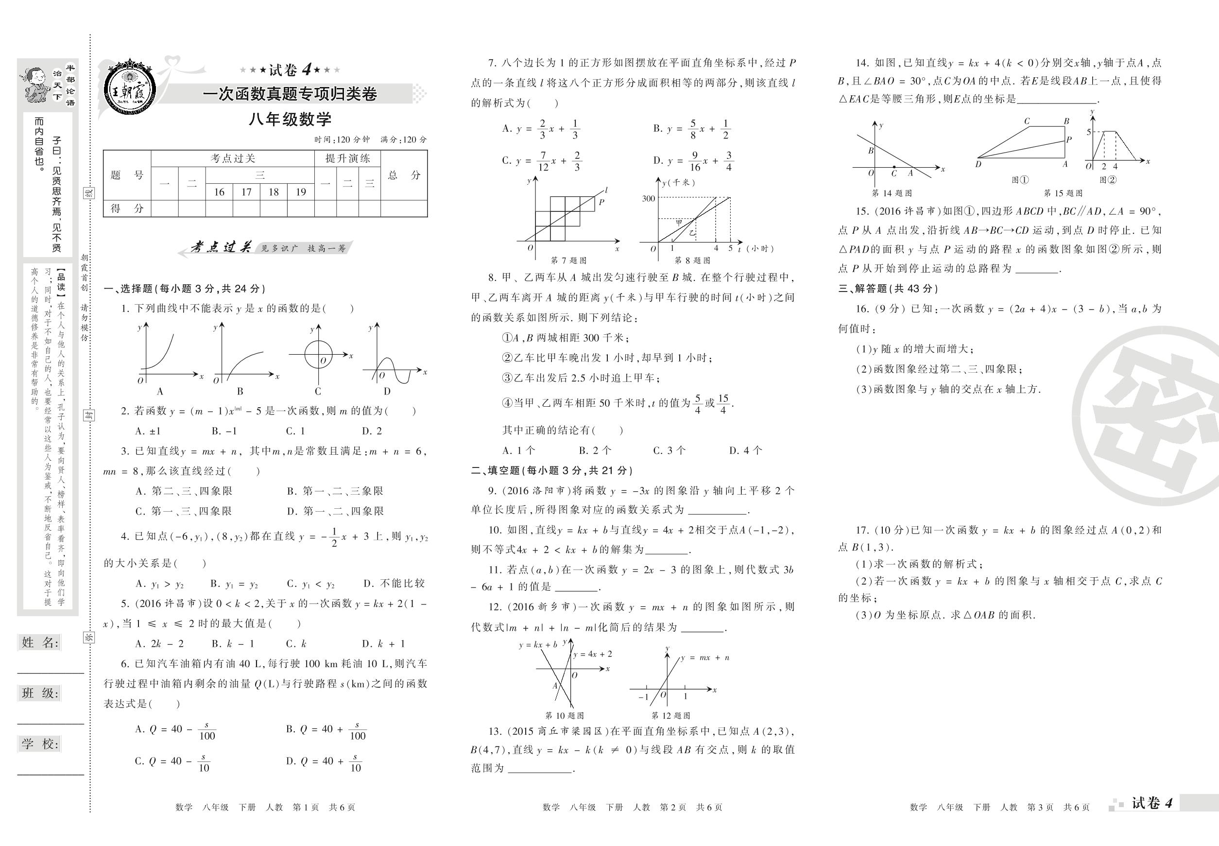 王朝霞期末专项卷——一次函数真题专项归类卷八年级下册数学(人教版)【4】