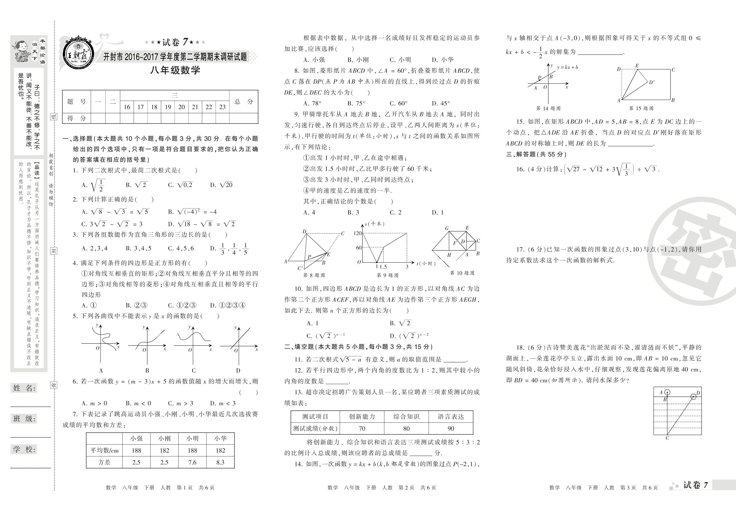 2016-2017学年第二学期开封市八年级数学试卷(人教版)【7】