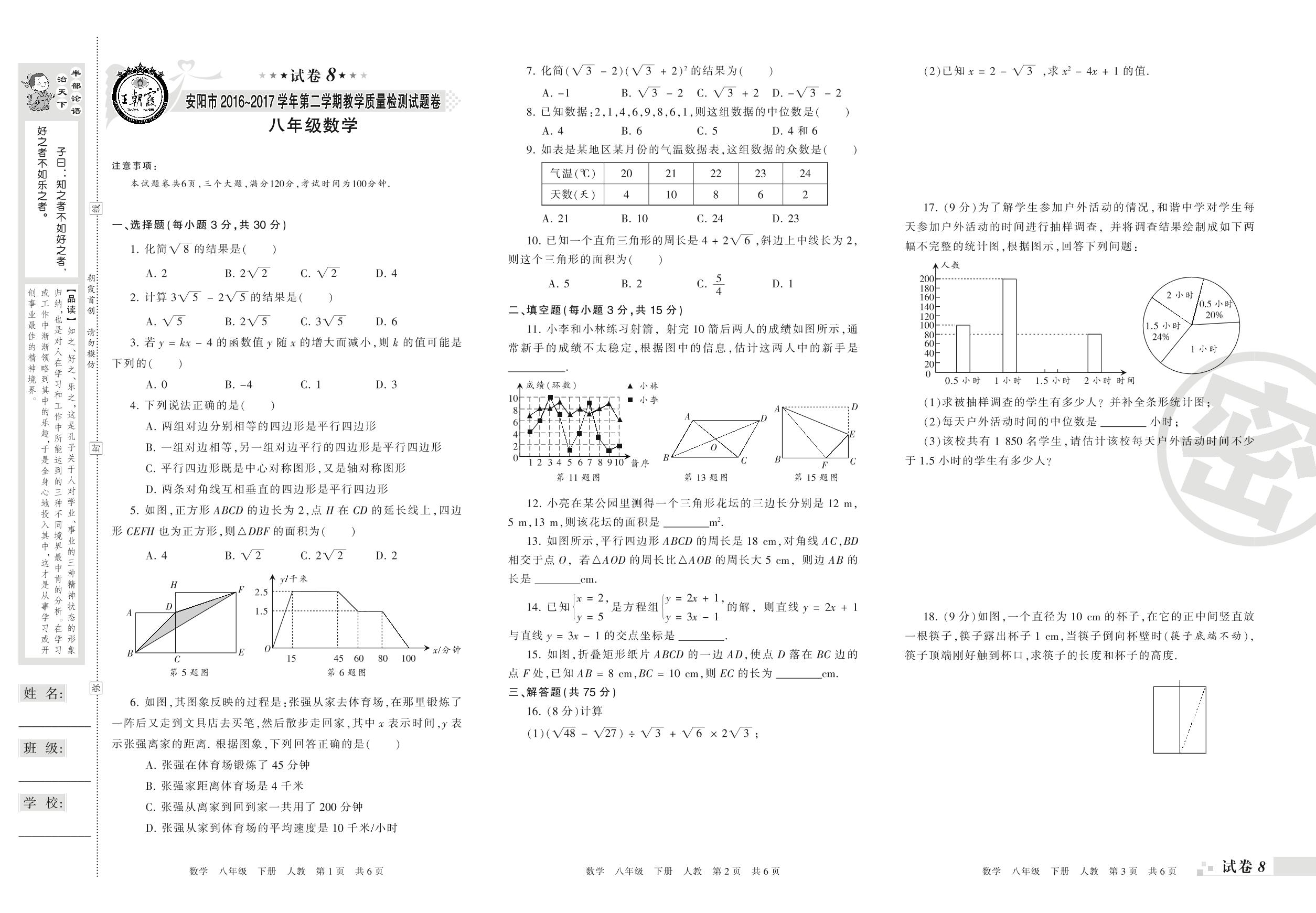 2016-2017学年第二学期安阳市八年级数学试卷(人教版)【8】