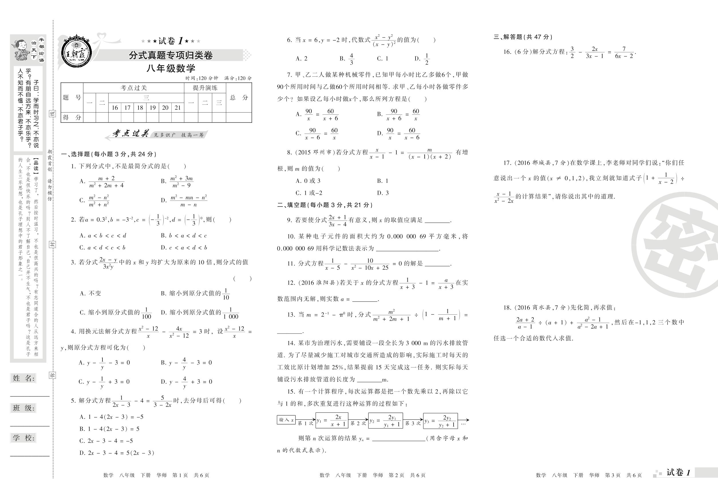 王朝霞期末专项卷——分式真题专项归类卷八年级下册数学(华师版)【1】