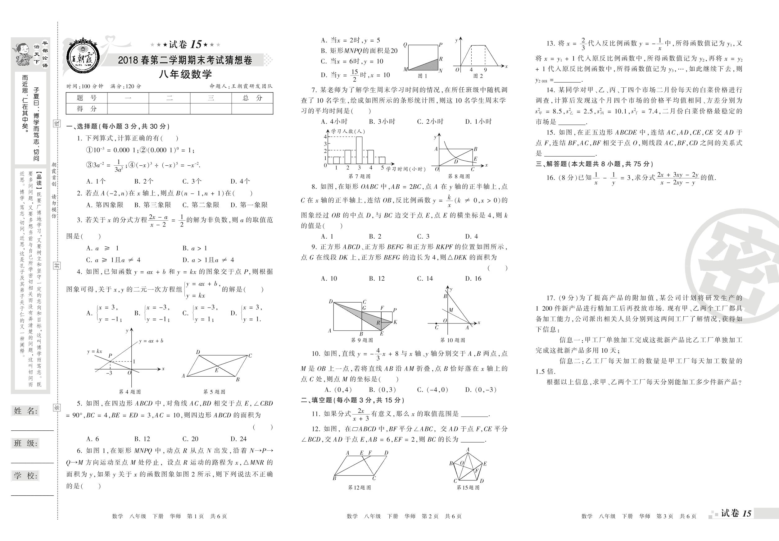 2017-2018学年第二学期期末考试猜想卷八年级数学(华师版)_R220124103322487【15】