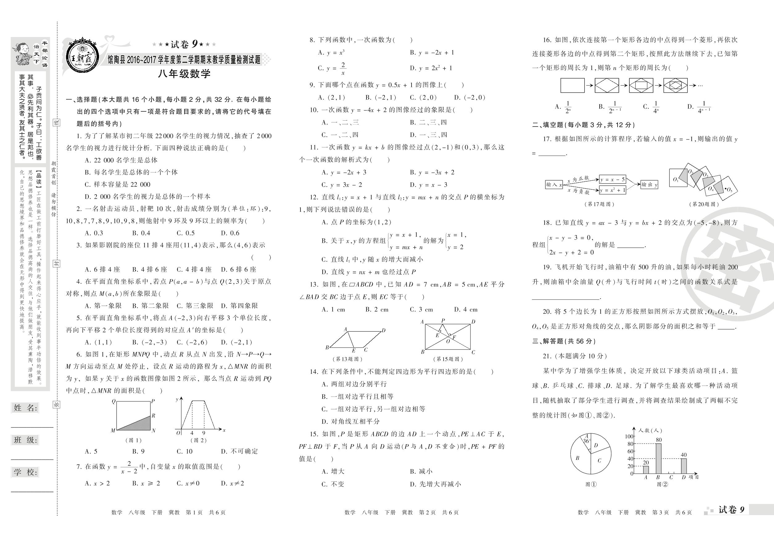 2016-2017学年第二学期邯郸市馆陶县八年级数学试卷(冀教版)【9】