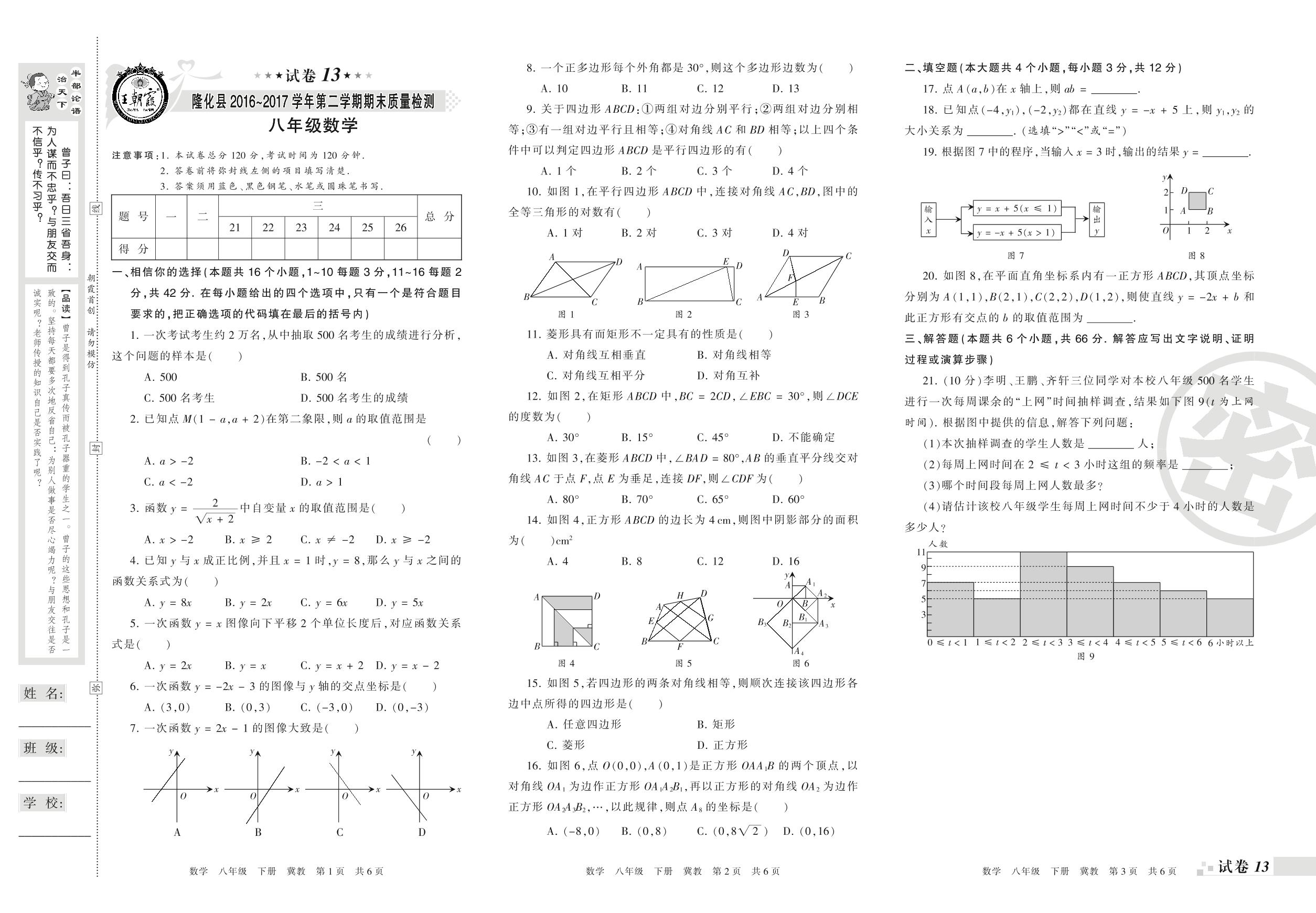 2016-2017学年第二学期承德市隆化县八年级数学试卷(冀教版)【13】