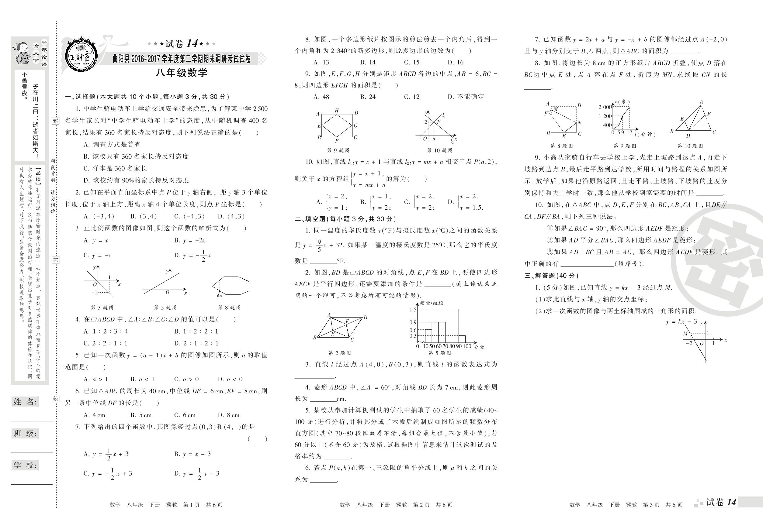 2016-2017学年第二学期保定市曲阳县八年级数学试卷(冀教版)【14】