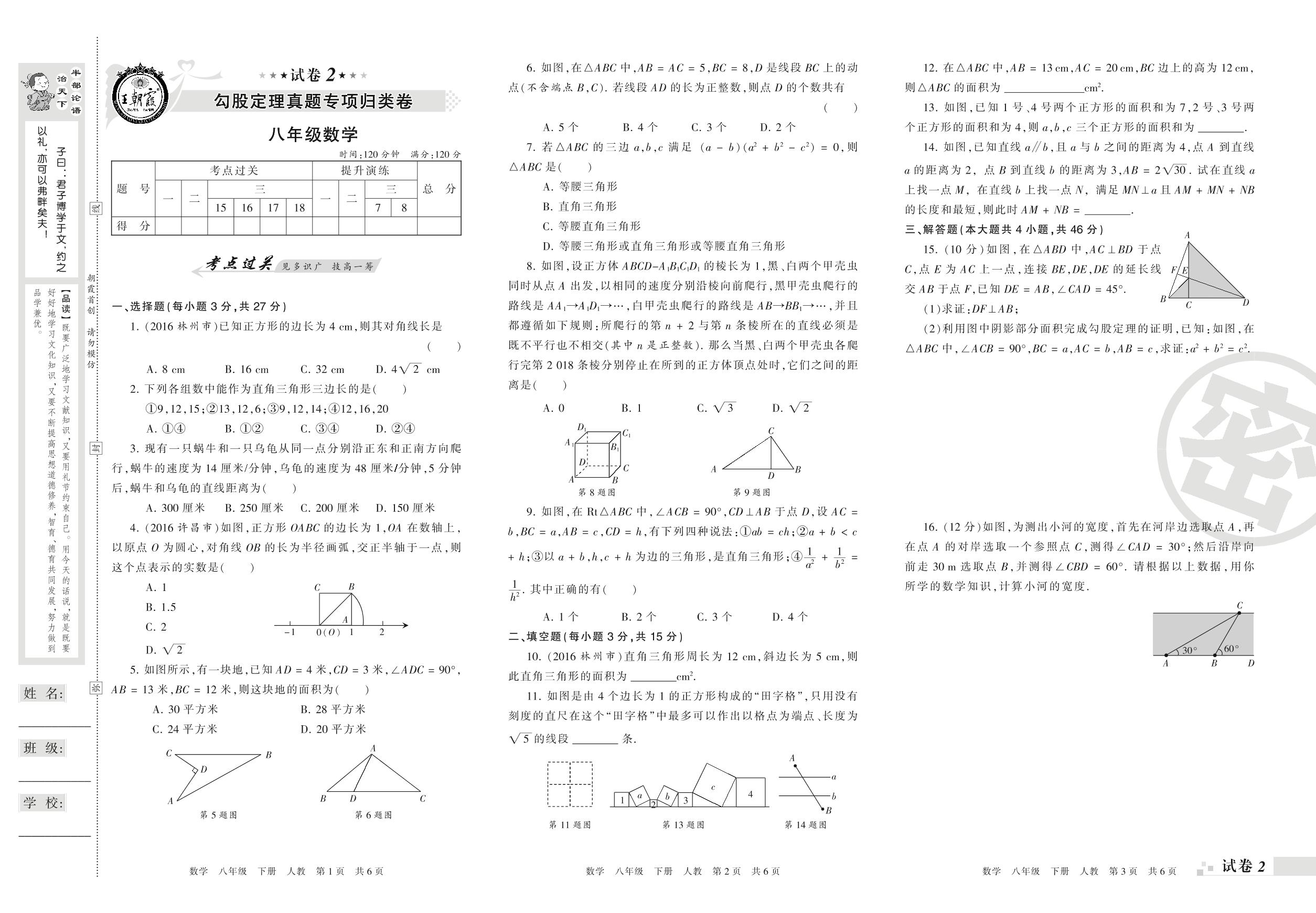 王朝霞期末专项卷——勾股定理真题专项归类卷八年级下册数学(人教版)_R220124104937939【2】