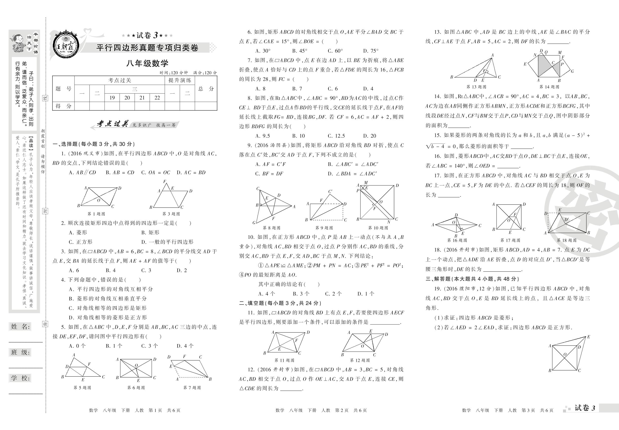 王朝霞期末专项卷——平行四边形真题专项归类卷八年级下册数学(人教版)_R220124104937785【3】