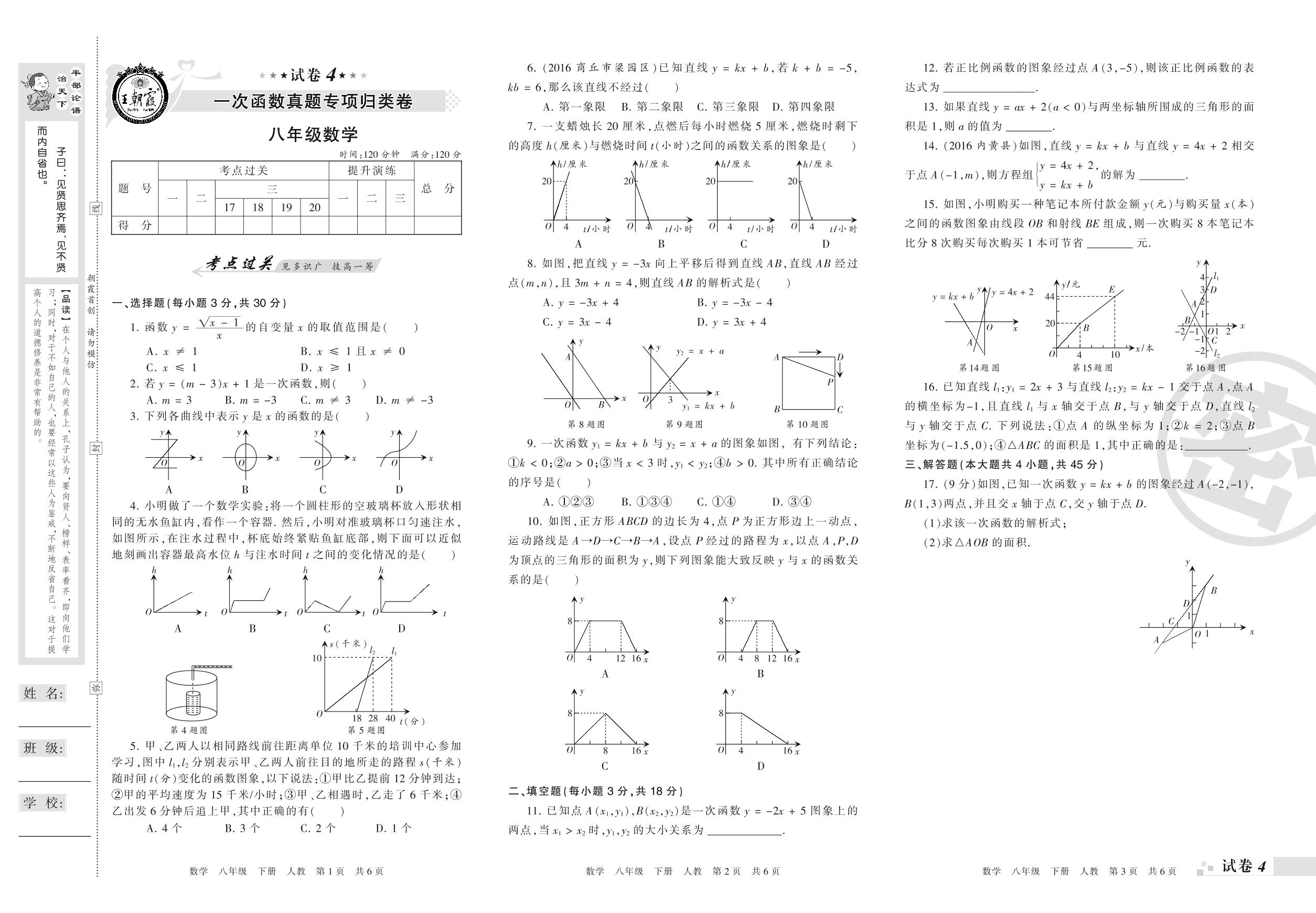王朝霞期末专项卷——一次函数真题专项归类卷八年级下册数学(人教版)_R220124104937959【4】