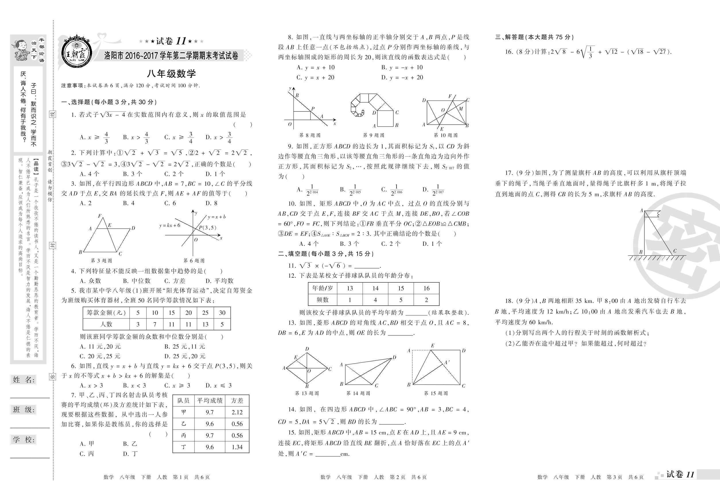2016-2017学年第二学期洛阳市八年级数学试卷(人教版)【11】