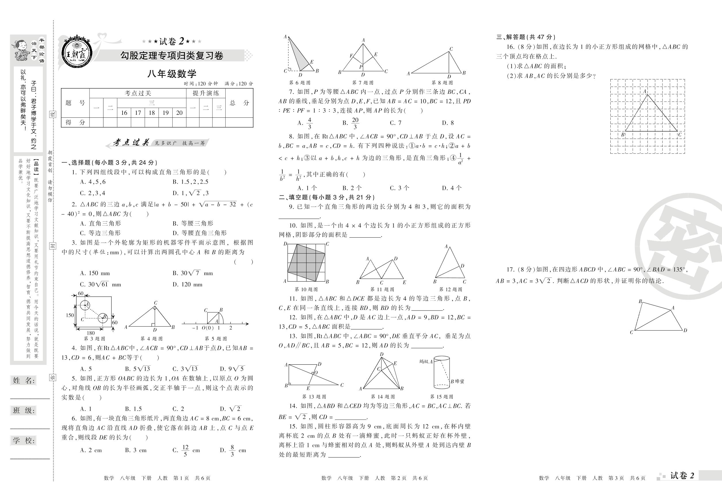 王朝霞期末专项卷——勾股定理专项归类复习卷八年级下册数学(人教版)【2】