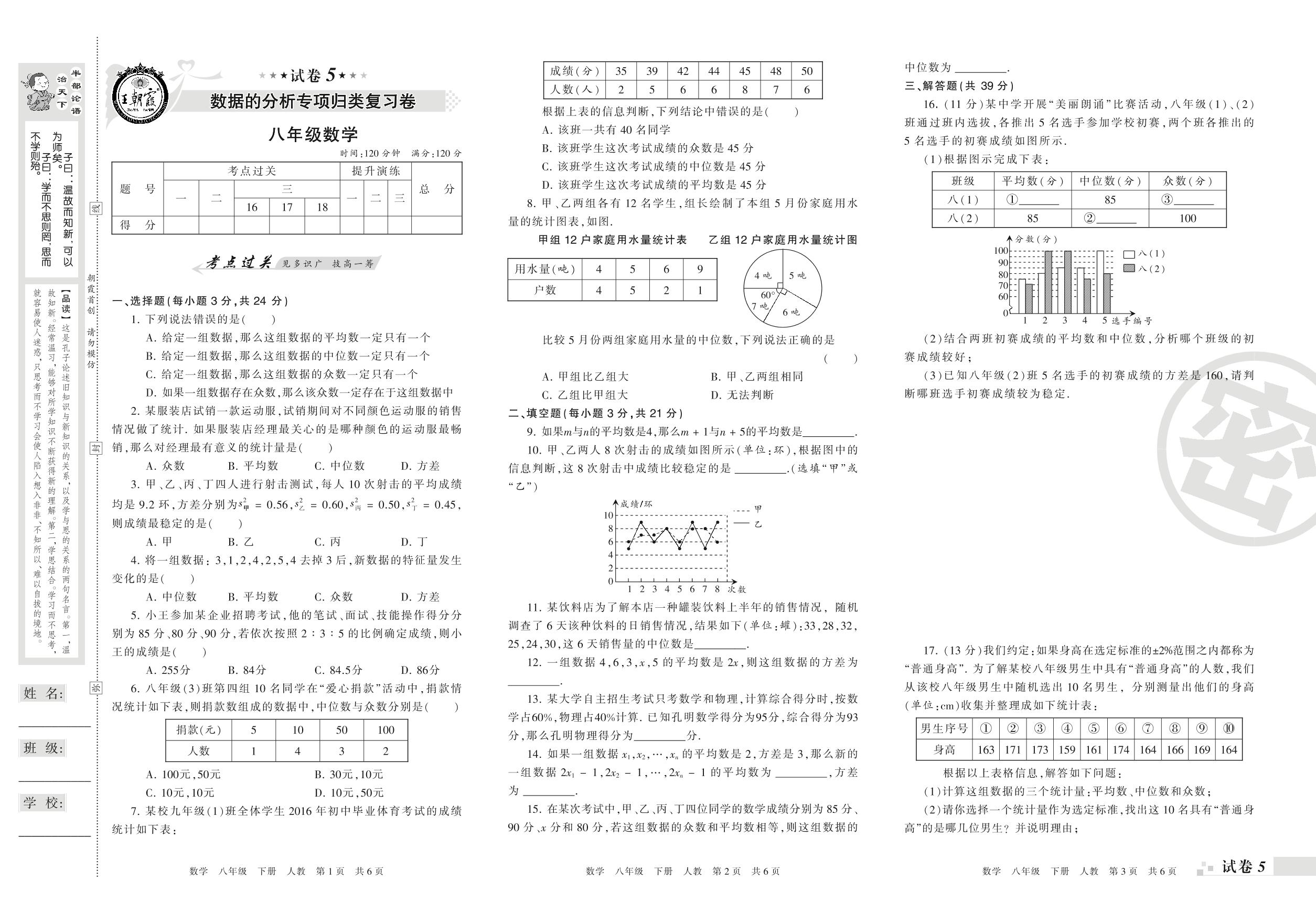 王朝霞期末专项卷——数据的分析专项归类复习卷八年级下册数学(人教版)【5】