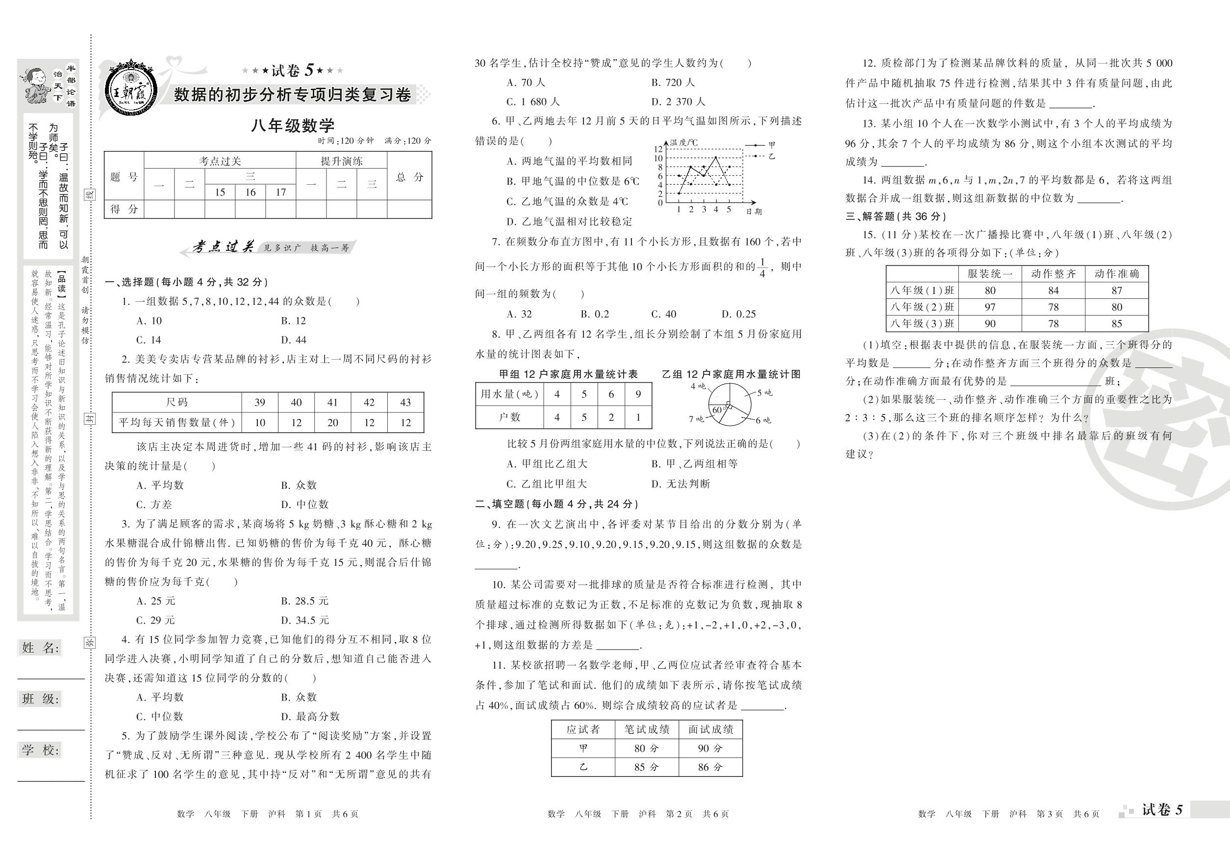王朝霞期末专项卷——数据的初步分析专项归类复习卷八年级下册数学(沪科版)【5】