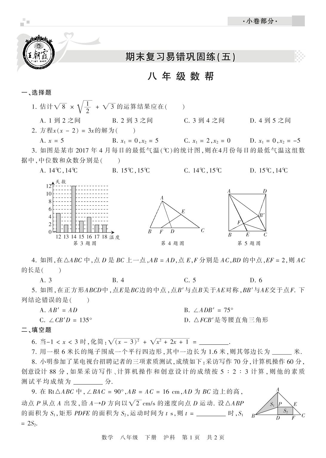 王朝霞期末小卷——期末复习易错巩固练(五)八年级下册数学(沪科版)【0】