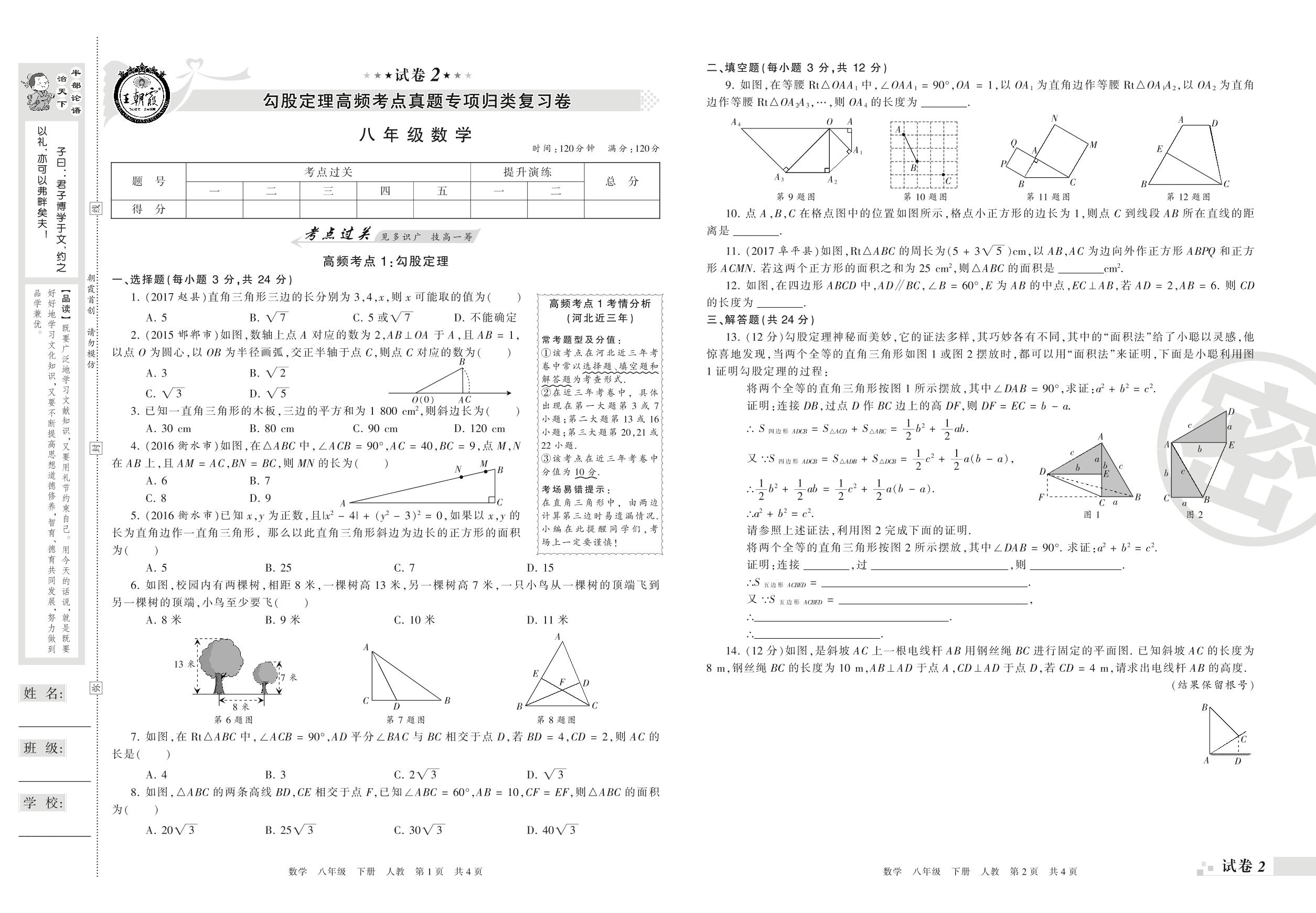 王朝霞期末专项卷——勾股定理高频考点真题专项归类复习卷八年级下册数学(人教版)【2】