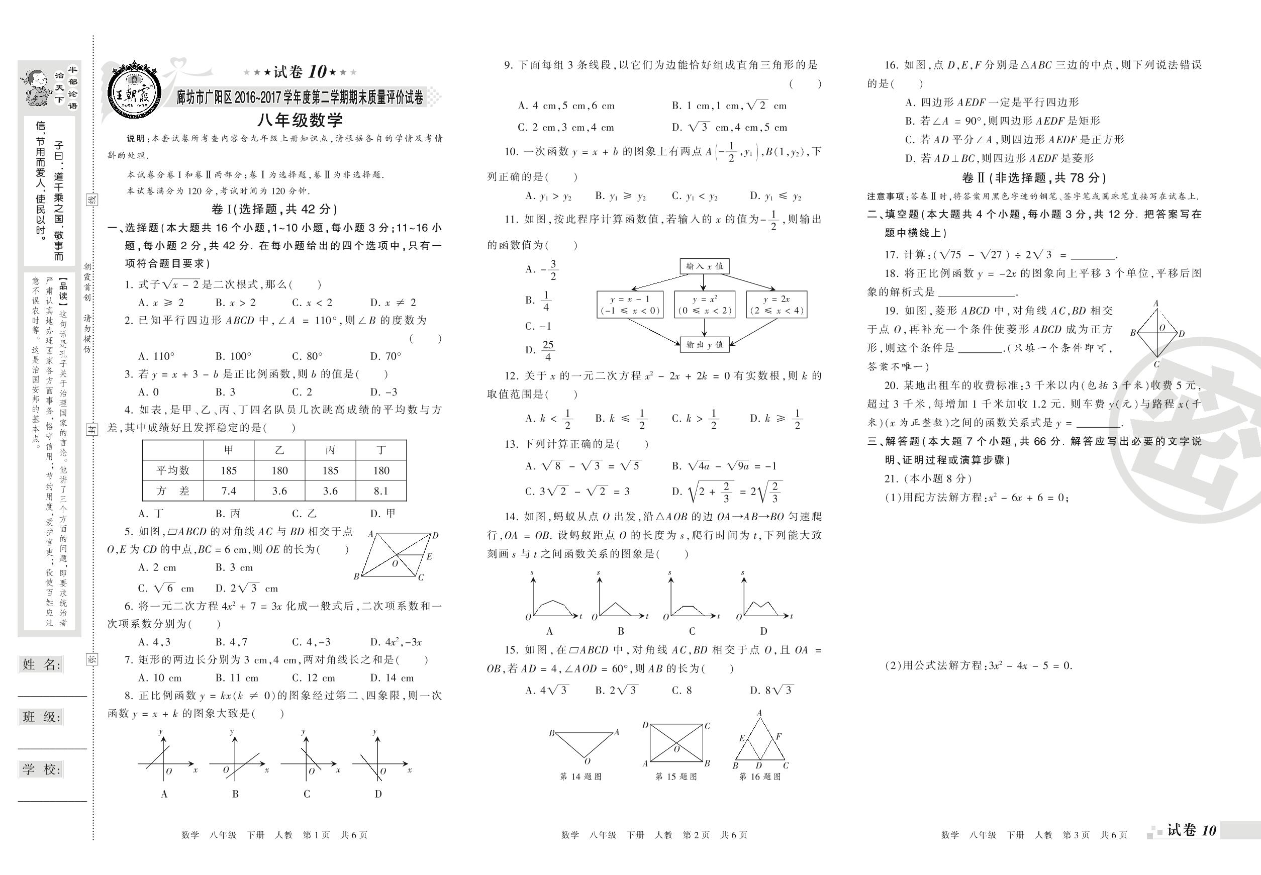 2016-2017学年第二学期廊坊市广阳区八年级数学试卷(人教版)【10】