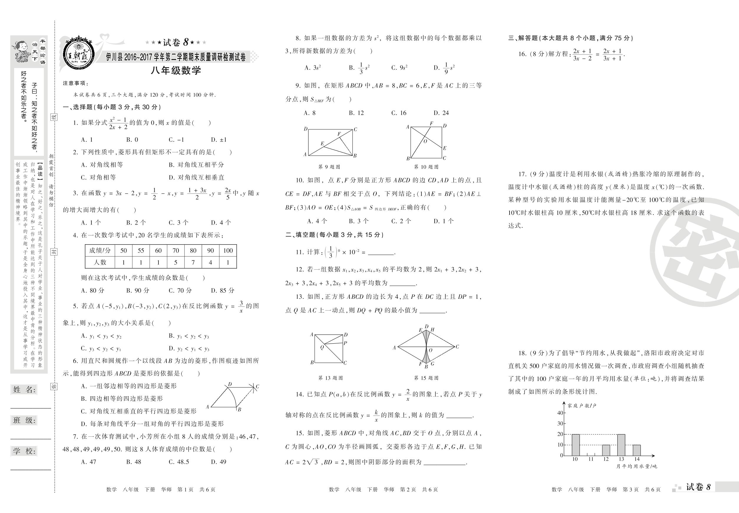 2016-2017学年第二学期洛阳市伊川县八年级数学试卷(华师版)【8】