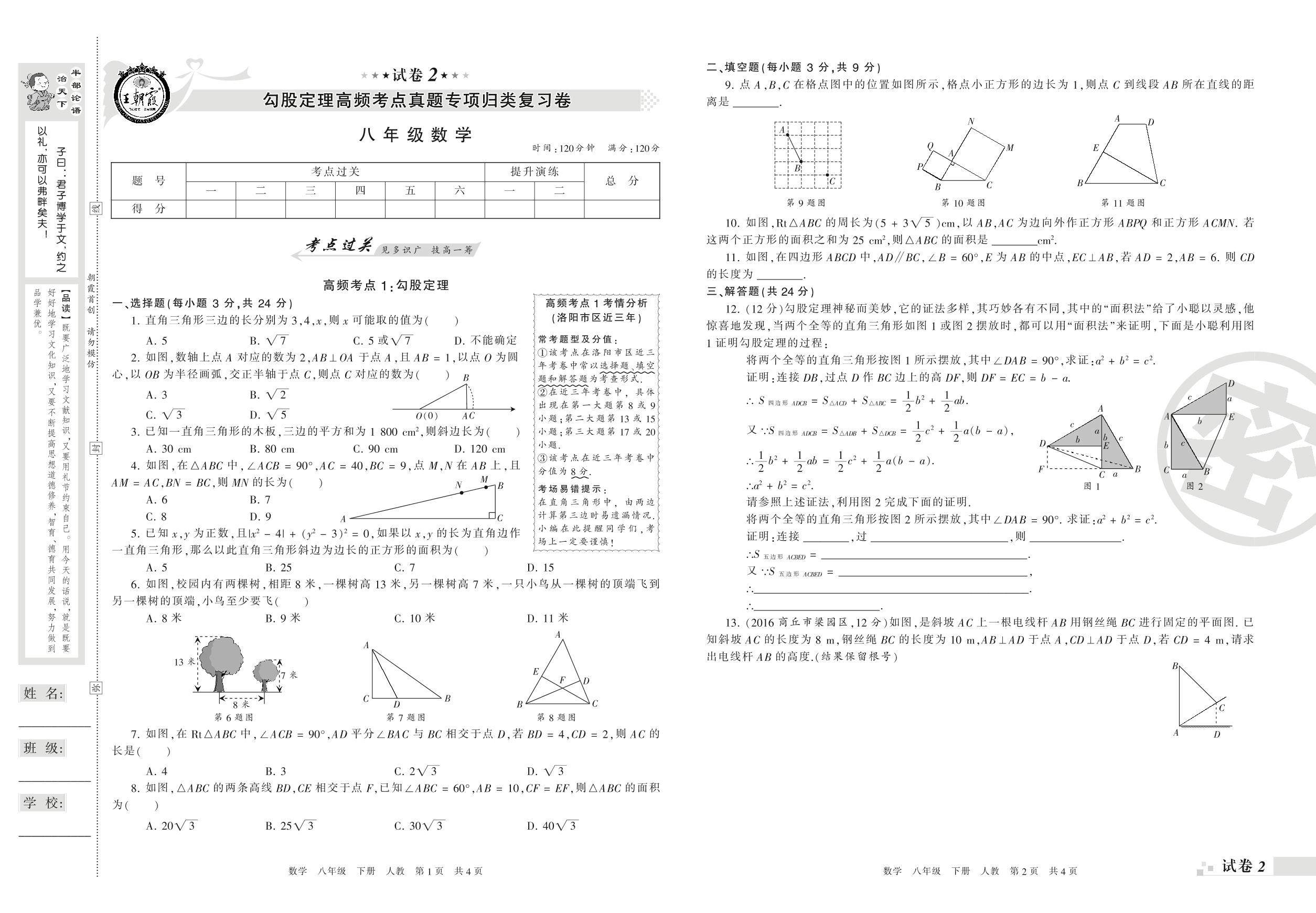 王朝霞期末专项卷——勾股定理高频考点真题专项归类复习卷八年级下册数学(人教版)_R220124113719467【2】