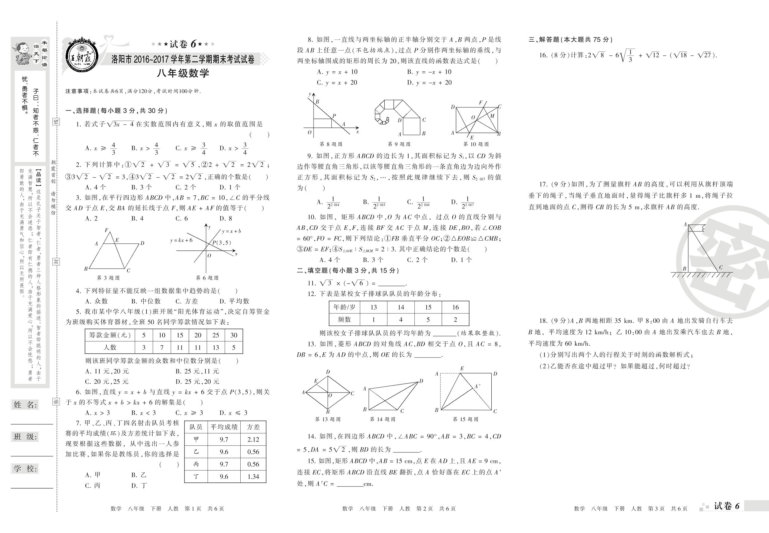 2016-2017学年第二学期洛阳市八年级数学试卷(人教版)_R220124113719963【6】