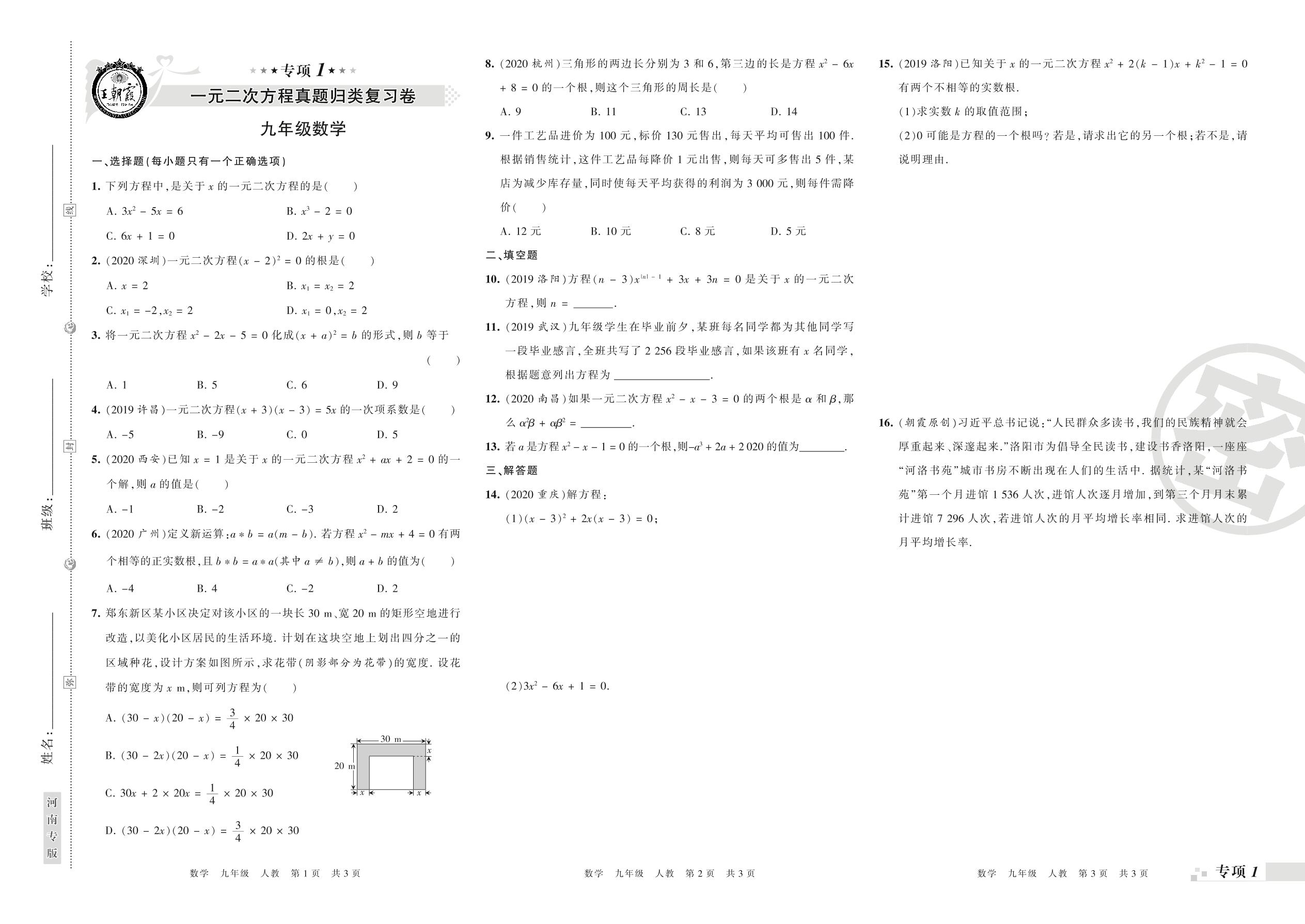 王朝霞期末专项卷——一元二次方程、二次函数的图象和性质九年级上册数学(人教版)【0】