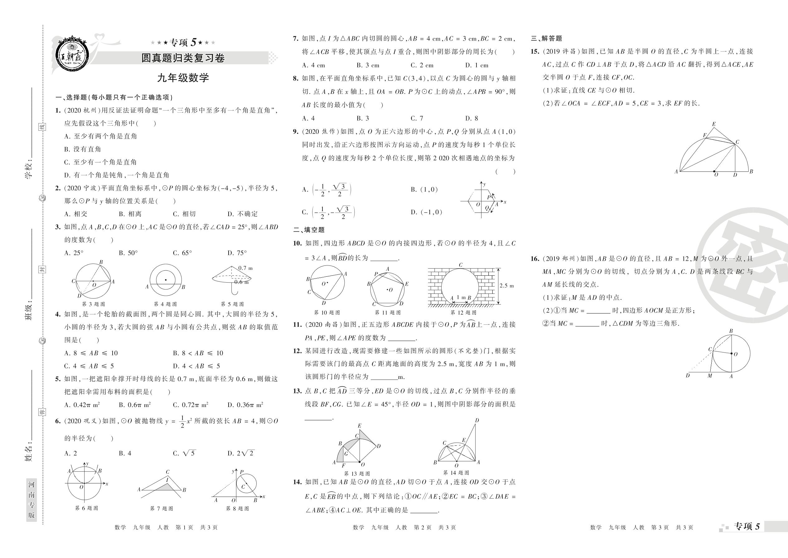 王朝霞期末专项卷——圆、概率初步真题归类复习九年级上册数学(人教版)【0】
