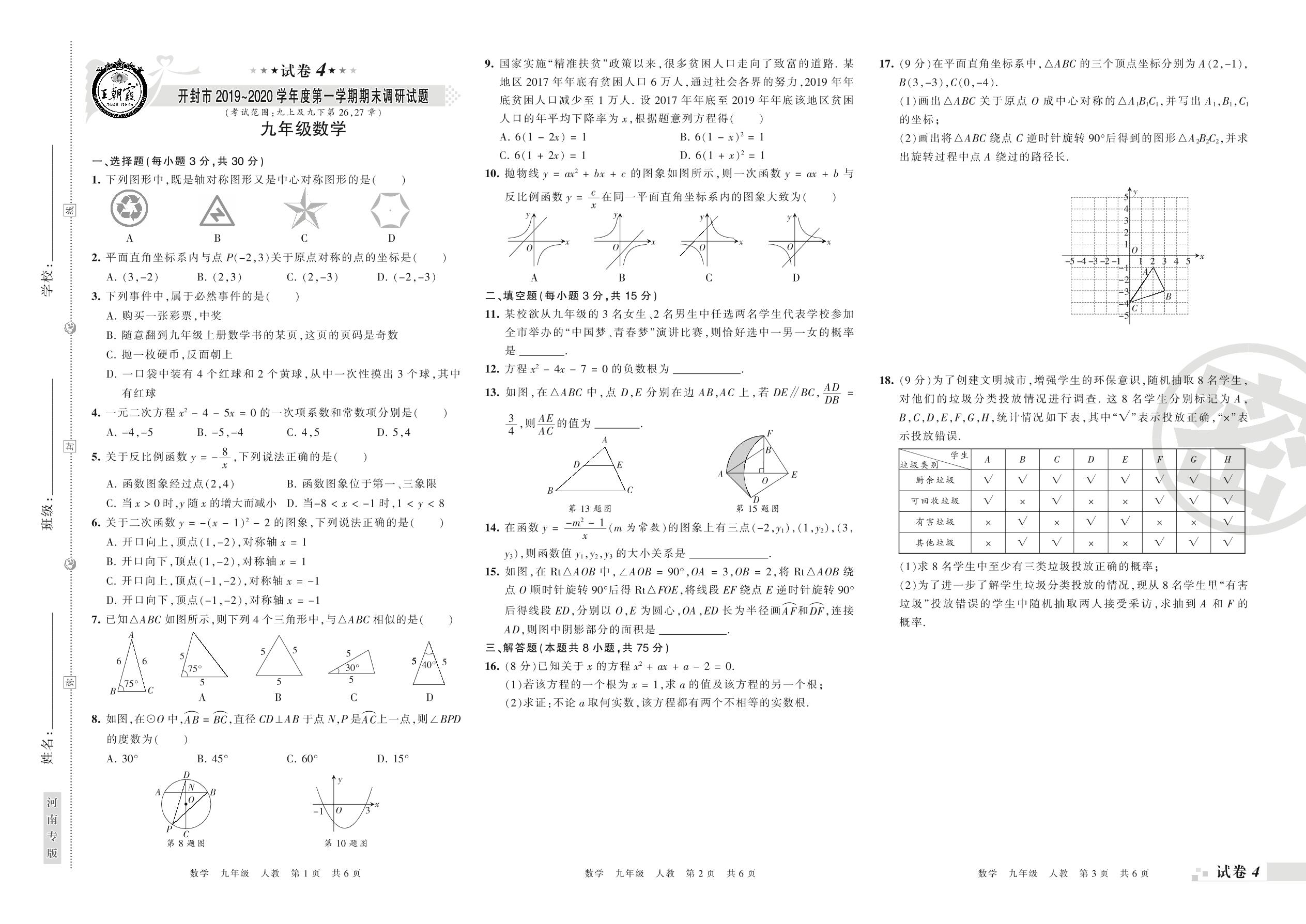 2019-2020学年第一学期开封市九年级数学试卷(人教版)【4】