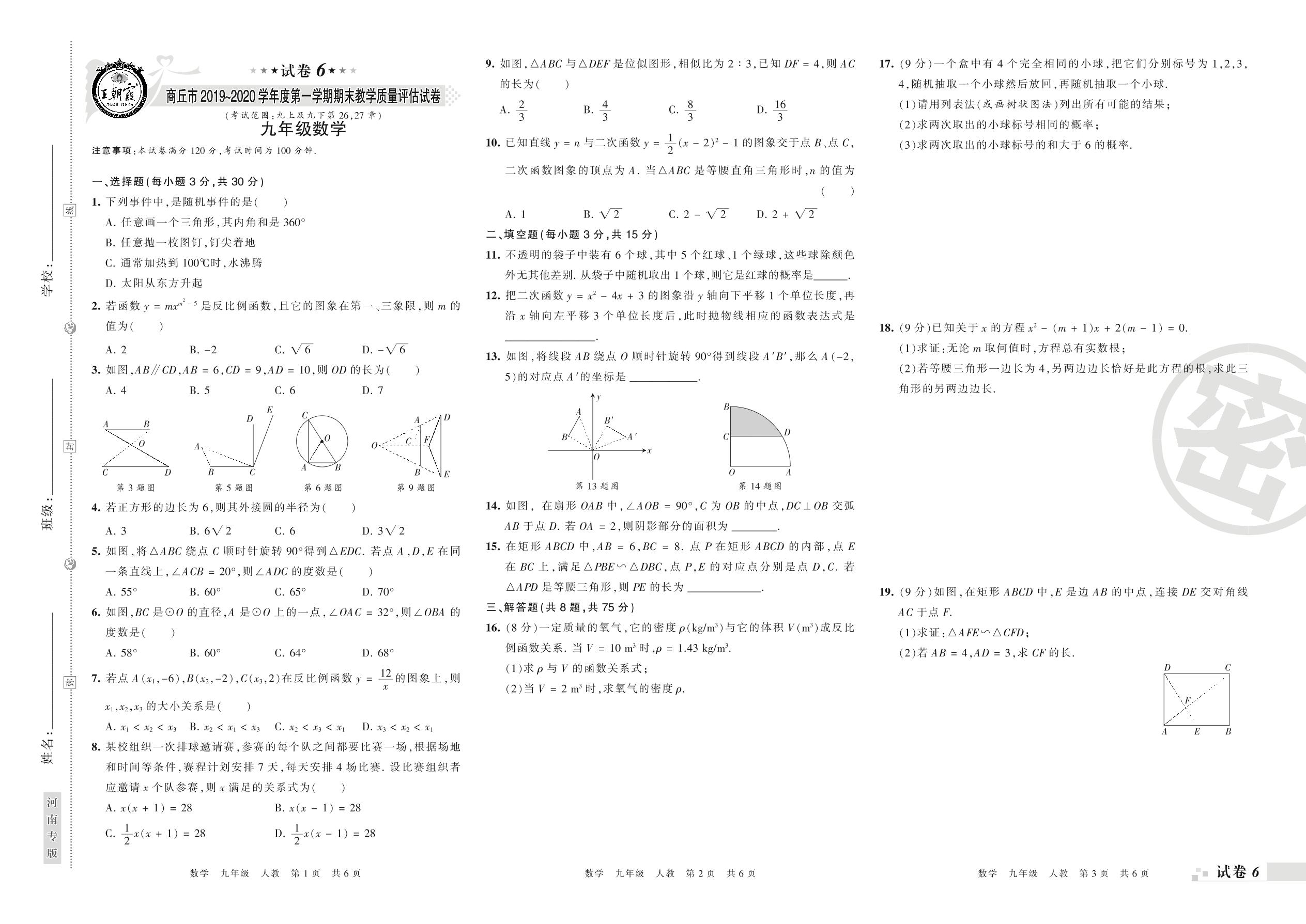2019-2020学年第一学期商丘市九年级数学试卷(人教版)【6】