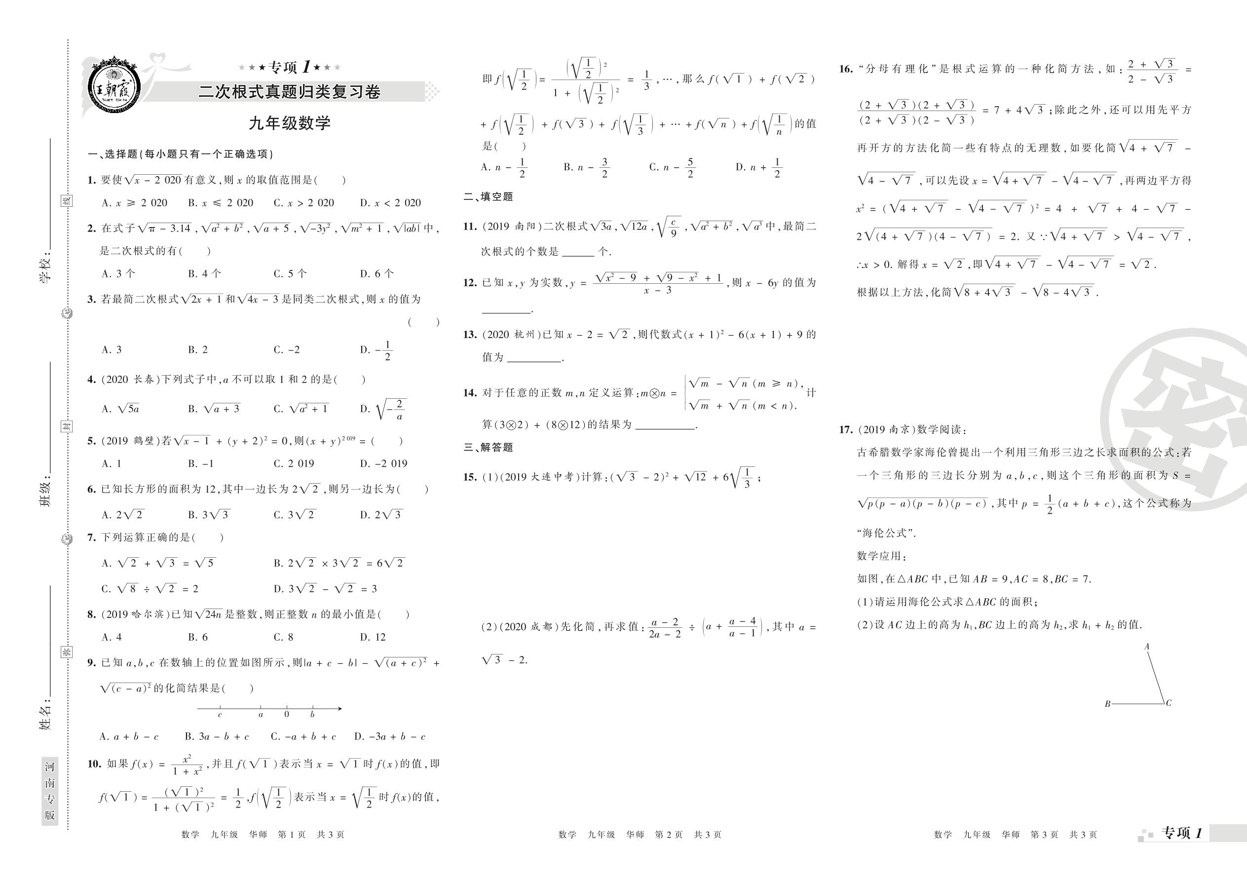 王朝霞期末专项卷——二次根式、一元二次方程真题归类复习九年级上册数学(华师版)【0】