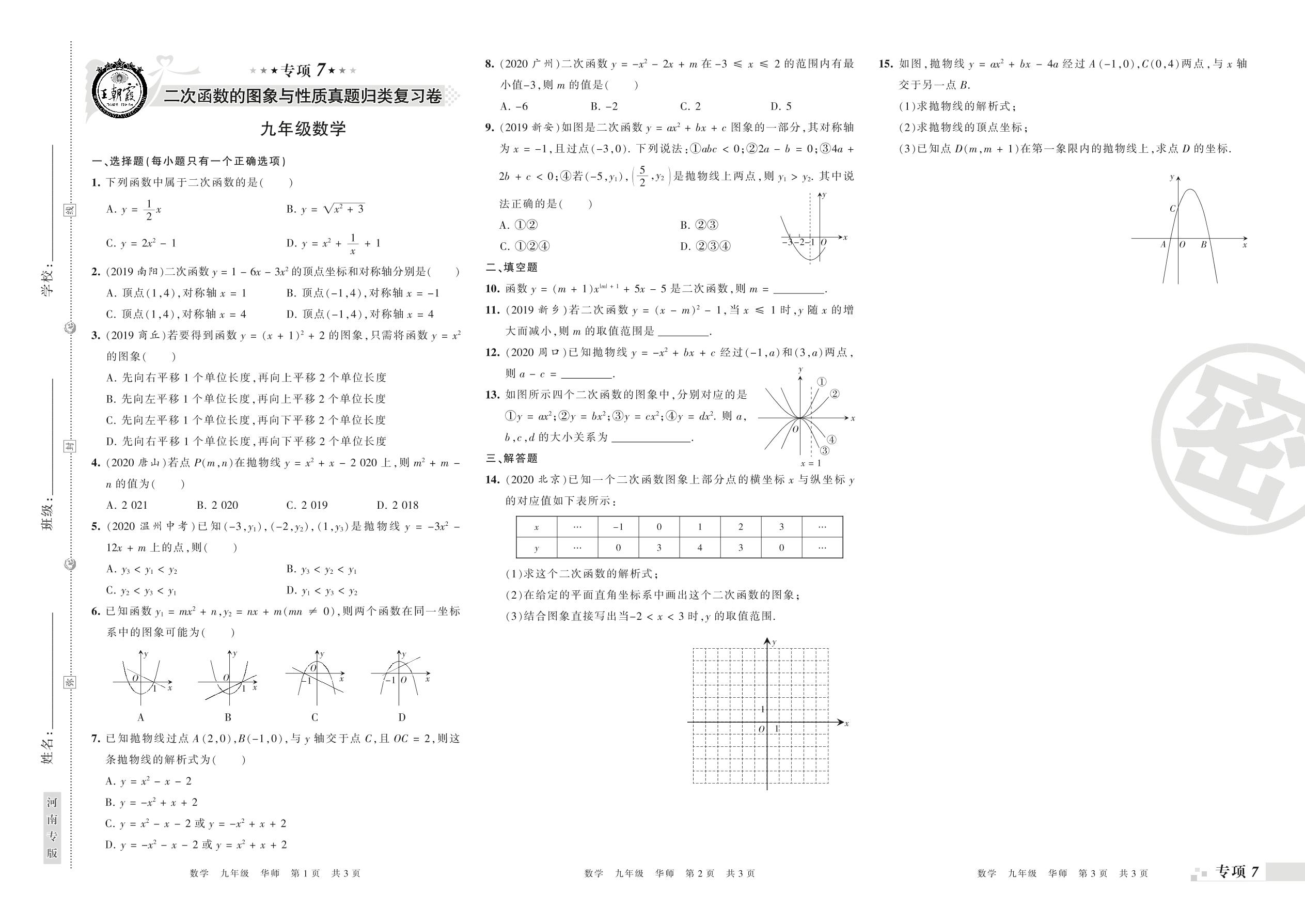王朝霞期末专项卷——二次函数的图象与性质、二次函数的应用真题归类复习九年级上册数学(华师版)【0】