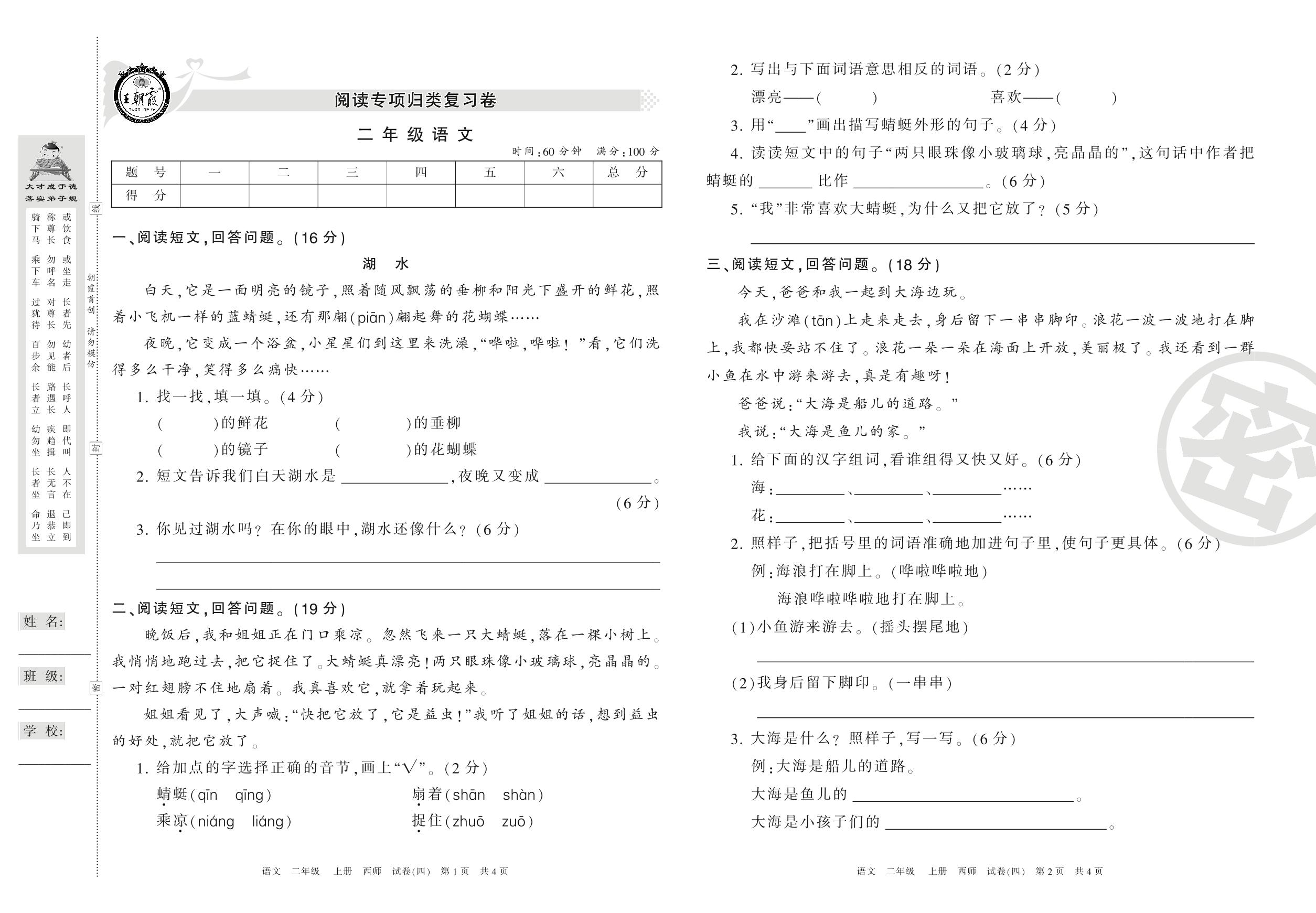 王朝霞期末专项卷二年级上册语文(西师版)_R21080175928【4】