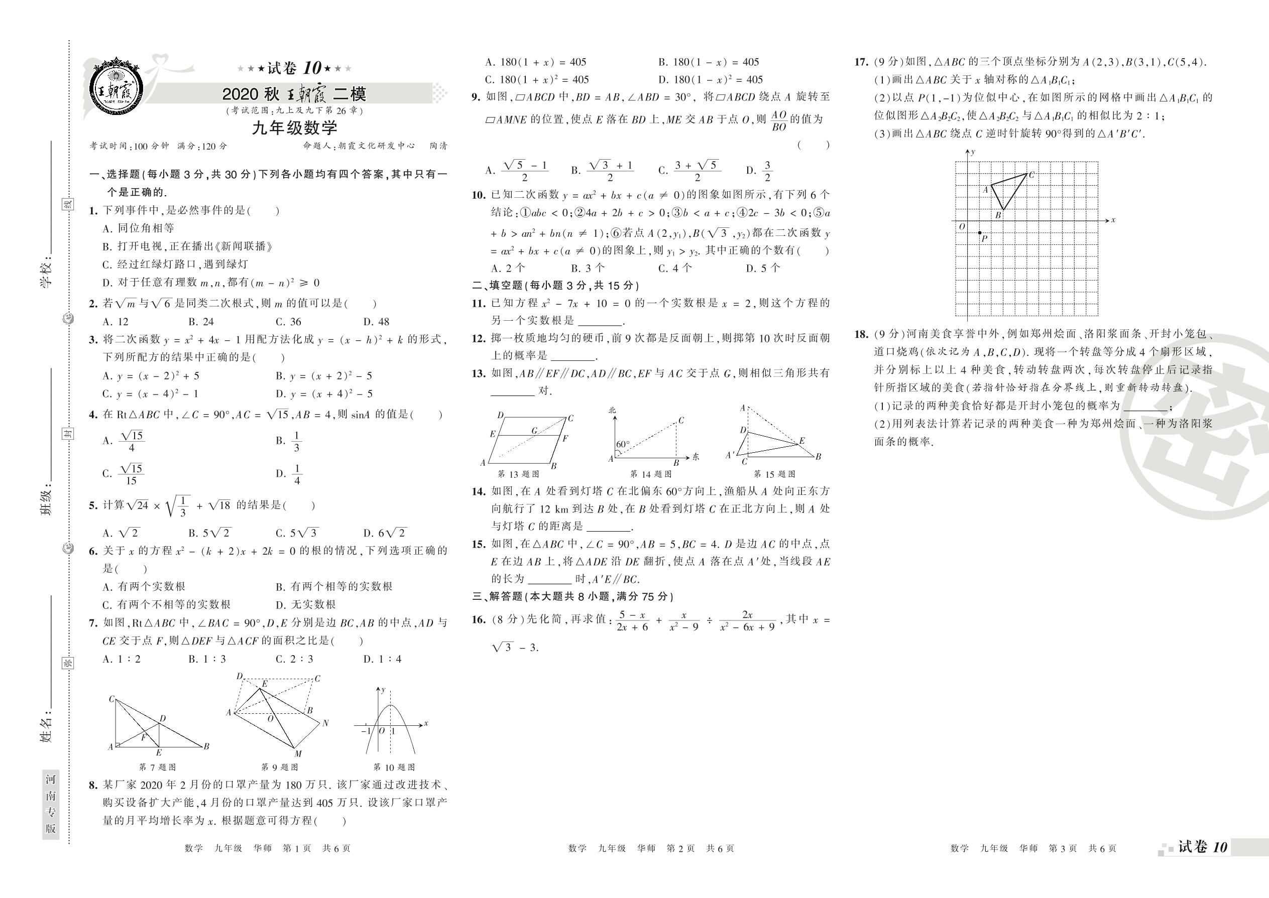 王朝霞期末模拟卷九年级上册数学(华师版)_R210806171057【10】