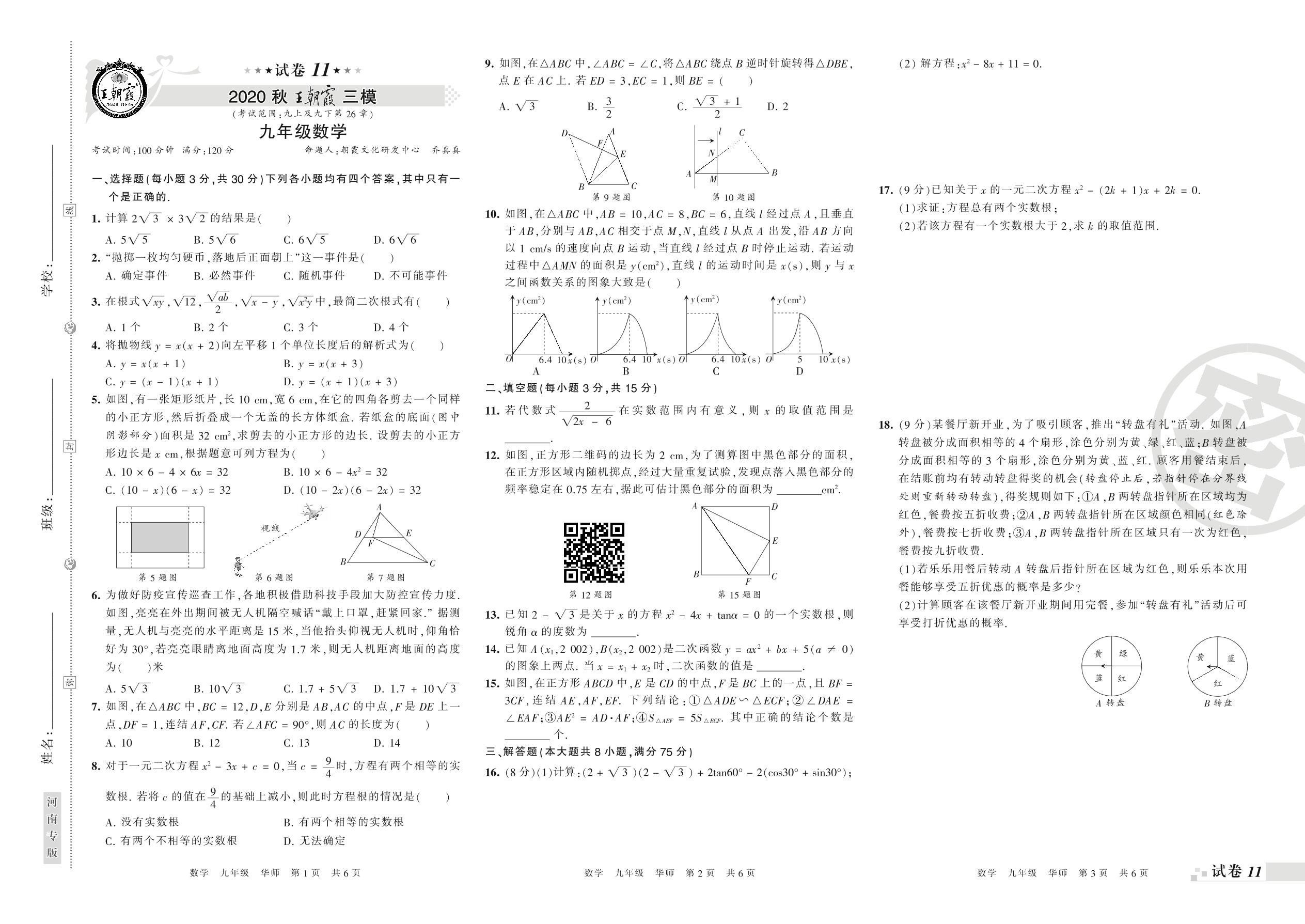 王朝霞期末模拟卷九年级上册数学(华师版)_R210806171103【11】