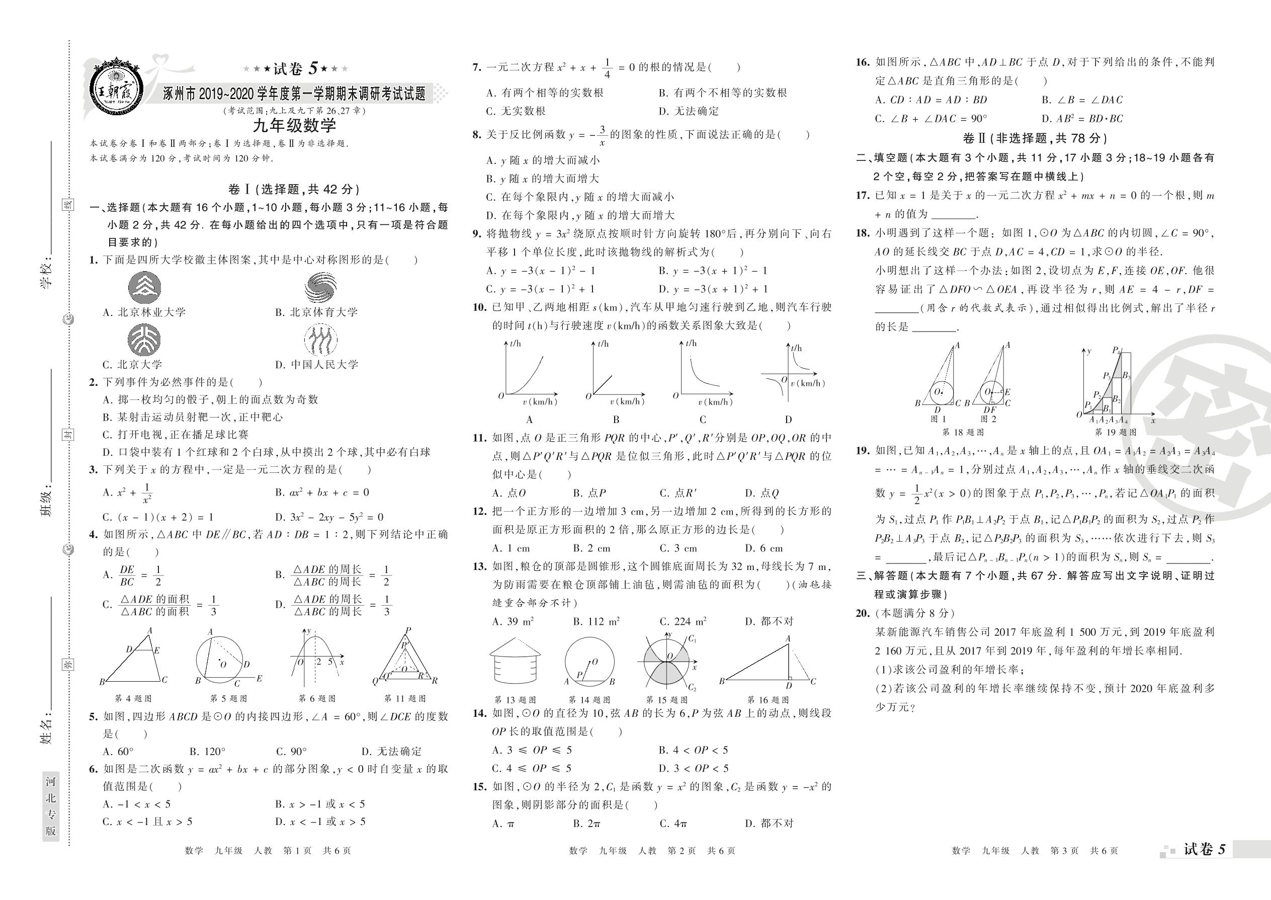 2019-2020学年第一学期涿州市九年级数学试卷(人教版)【5】