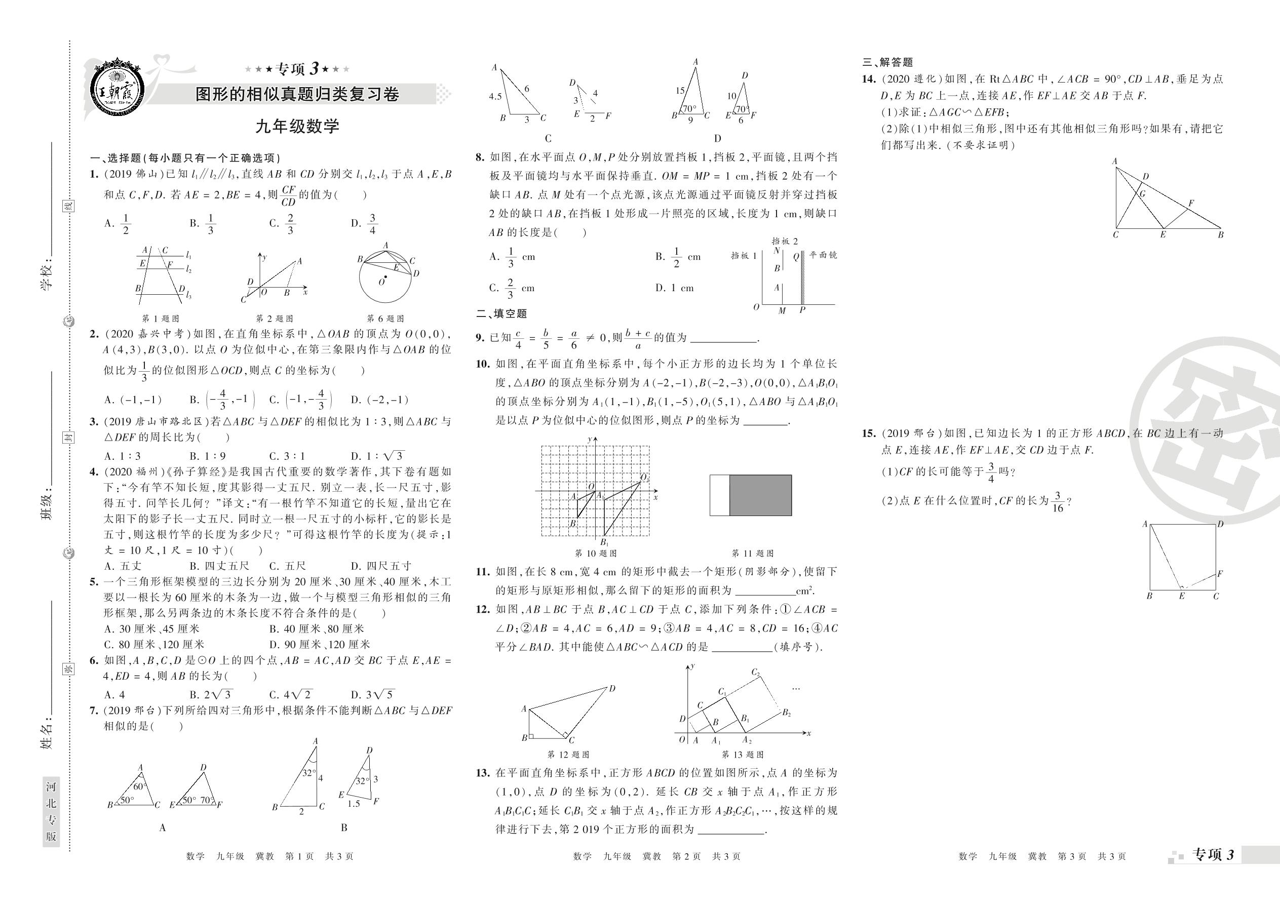 王朝霞期末专项卷——图形的相似、解直角三角形真题归类复习九年级上册数学(冀教版)【0】
