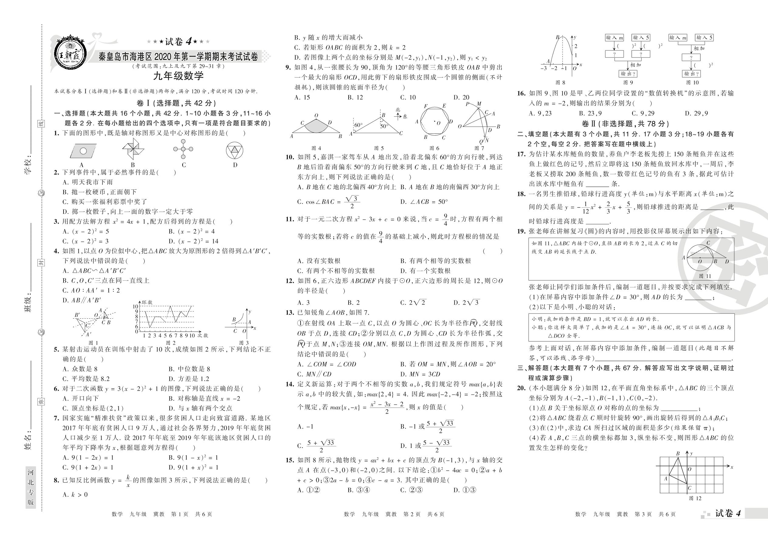2019-2020学年第一学期秦皇岛市海港区九年级数学试卷(冀教版)【4】