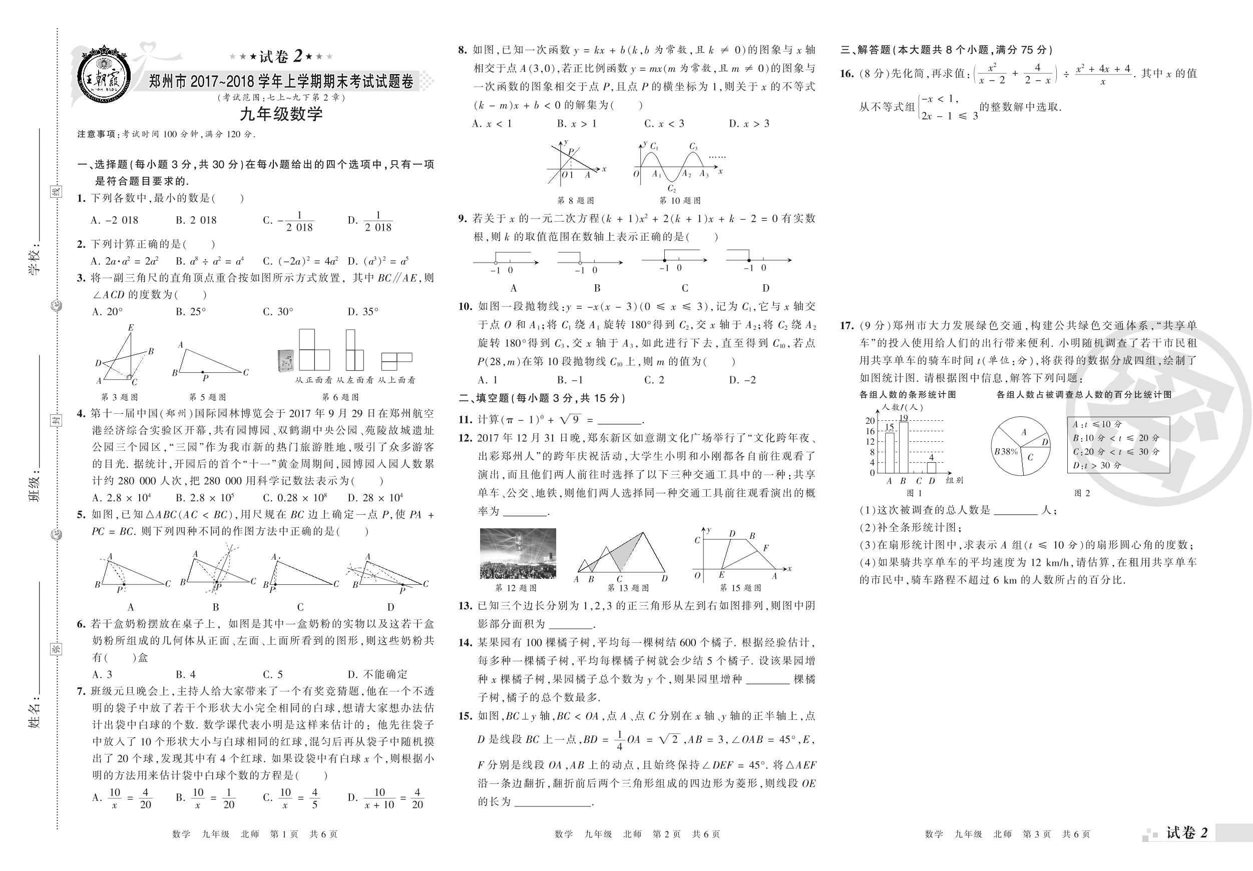2017-2018学年第一学期郑州市九年级数学试卷(北师版)【2】