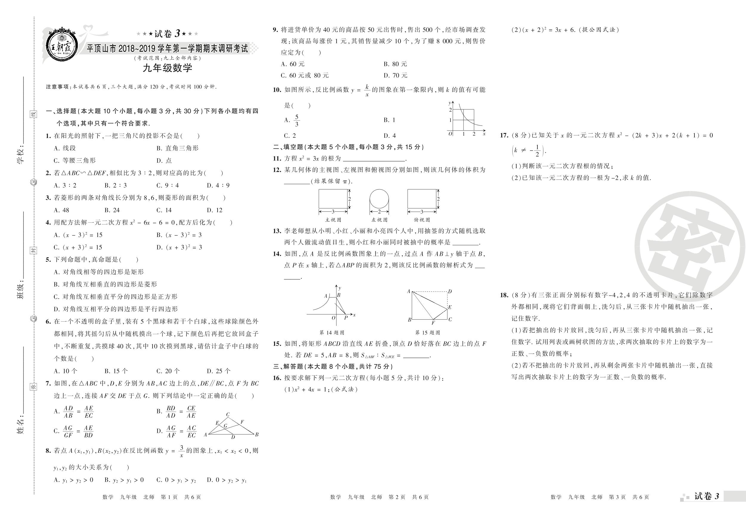 2018-2019学年第一学期平顶山市九年级数学试卷(北师版)【3】