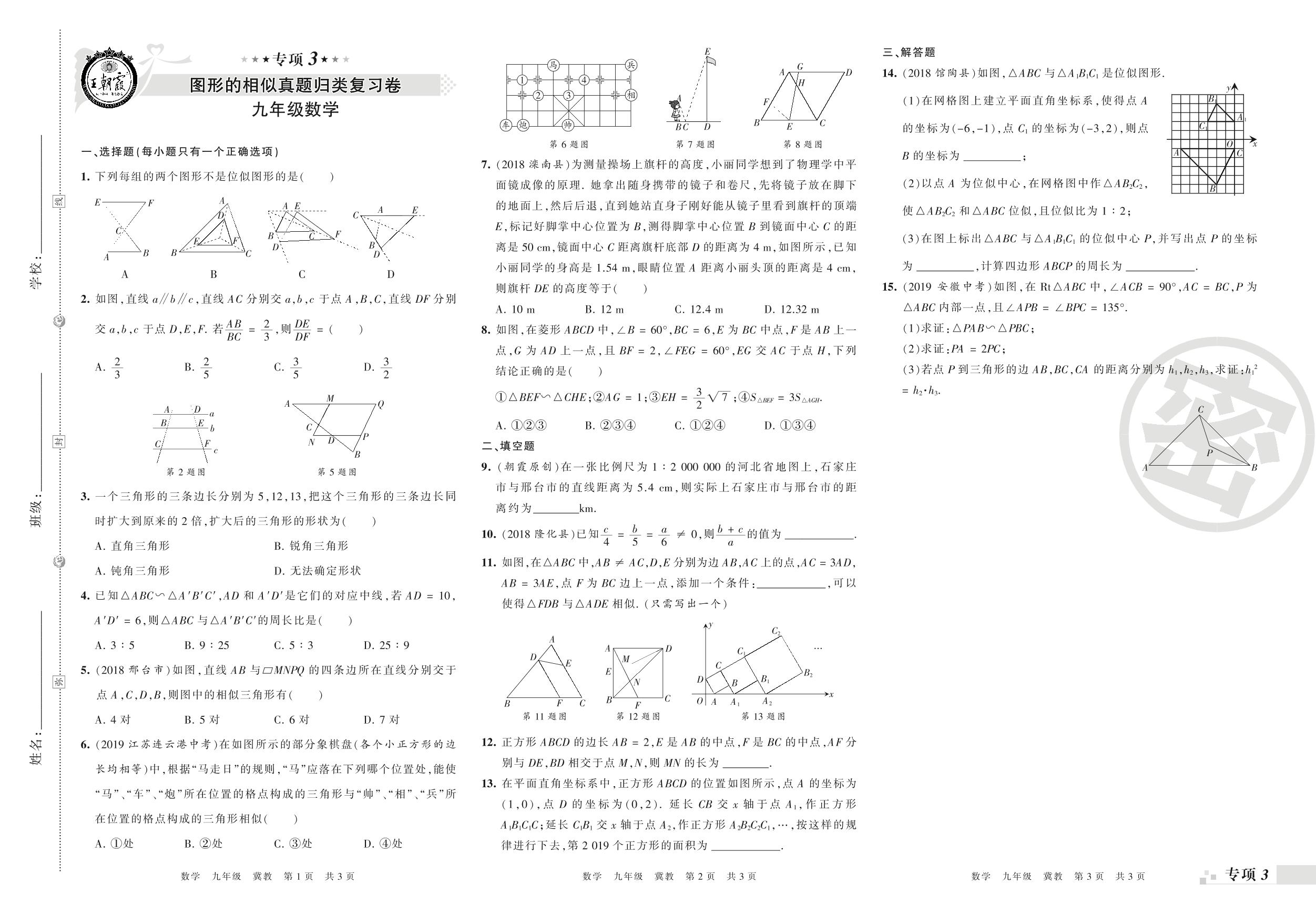 王朝霞期末专项卷——图形的相似、解直角三角形真题归类复习九年级上册数学(冀教版)_R210806171731【0】