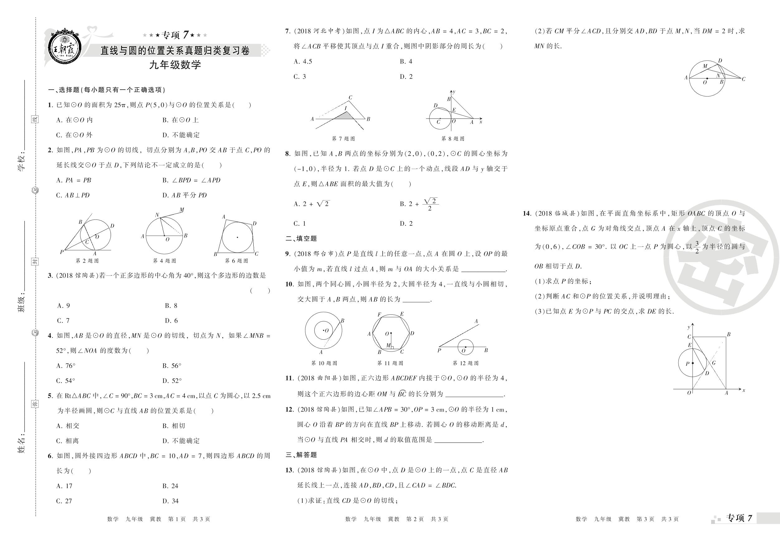 王朝霞期末专项卷——直线与圆的位置关系、二次函数的图象与性质真题归类复习九年级上册数学(冀教版)_R210806171743【0】