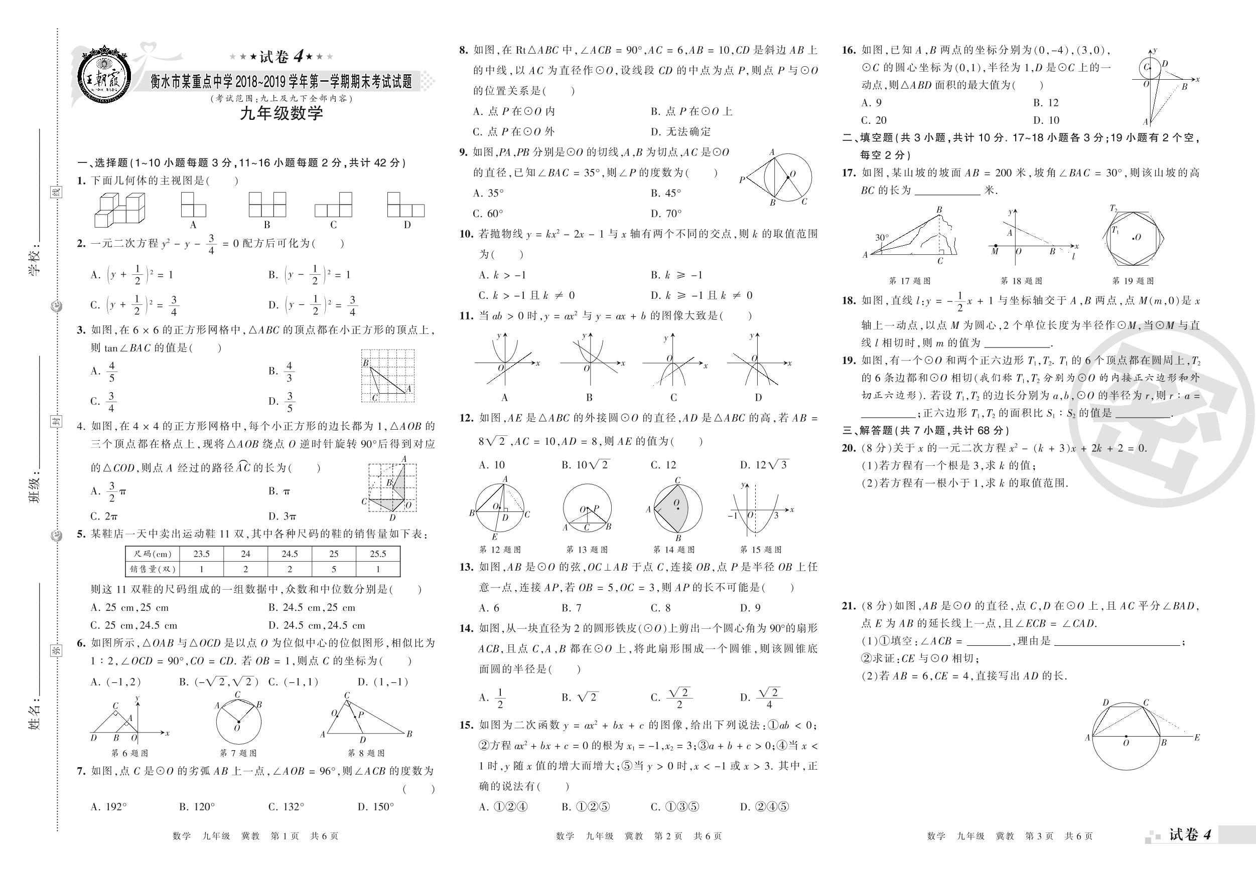 2018-2019学年第一学期衡水市某重点中学九年级数学试卷(冀教版)【4】