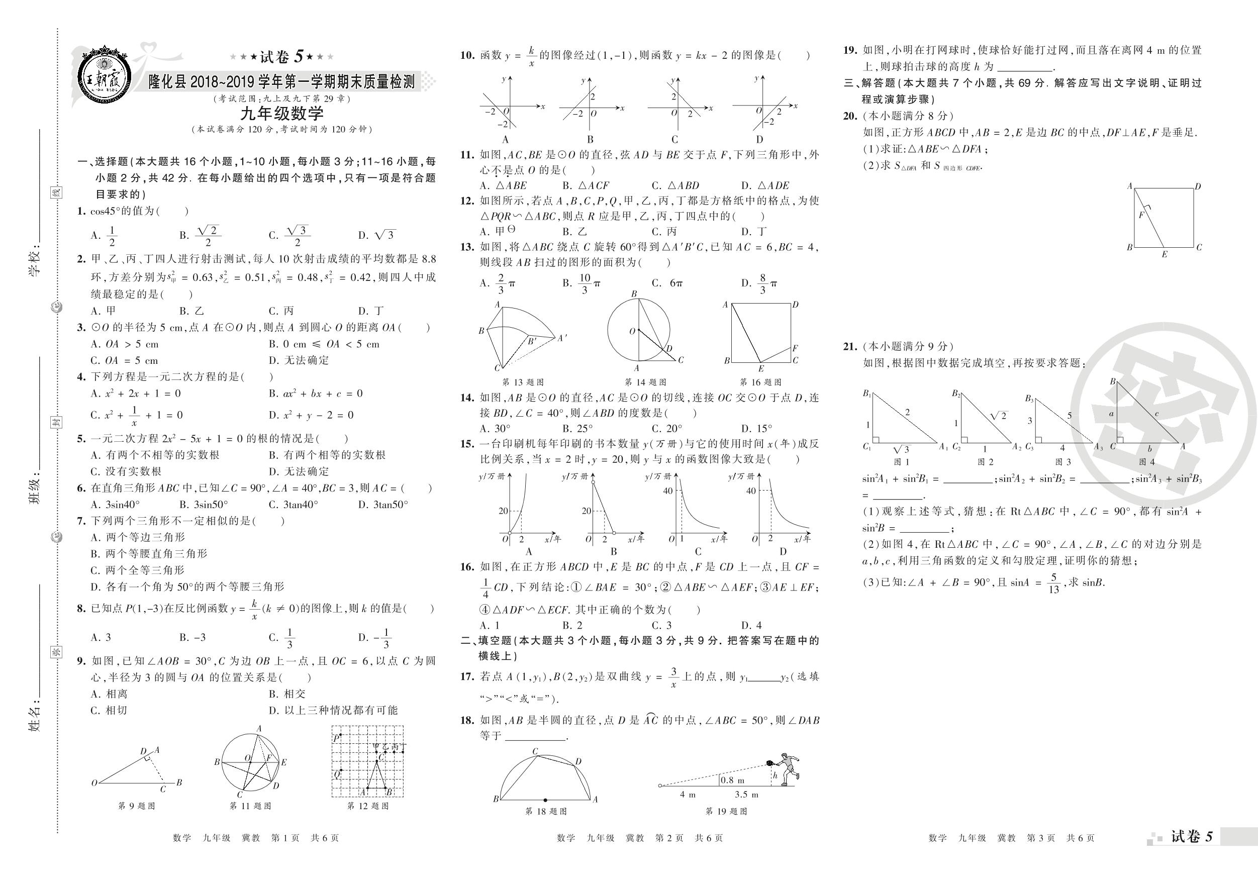 2018-2019学年第一学期承德市隆化县九年级数学试卷(冀教版)【5】