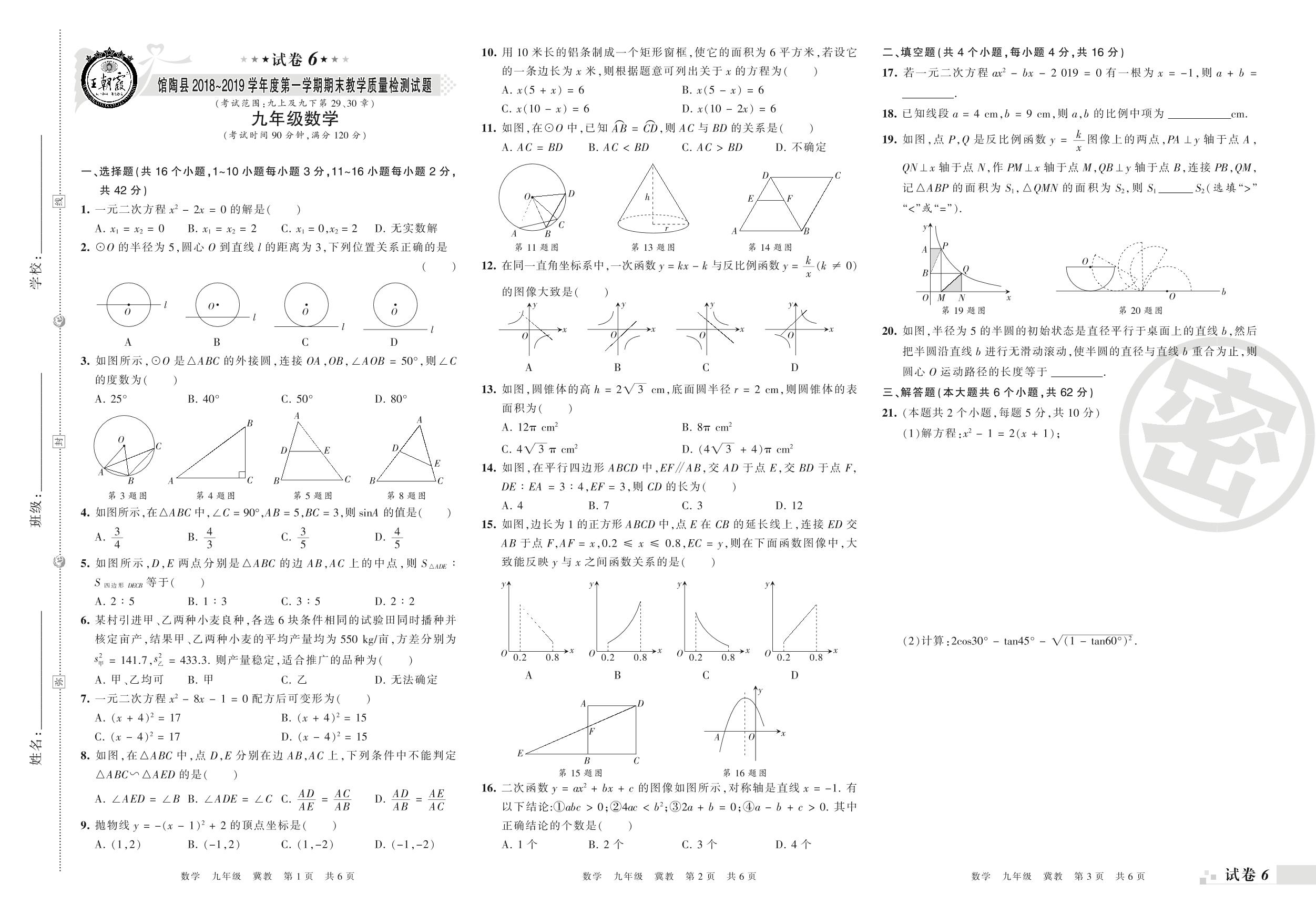 2018-2019学年第一学期邯郸市馆陶县九年级数学试卷(冀教版)【6】
