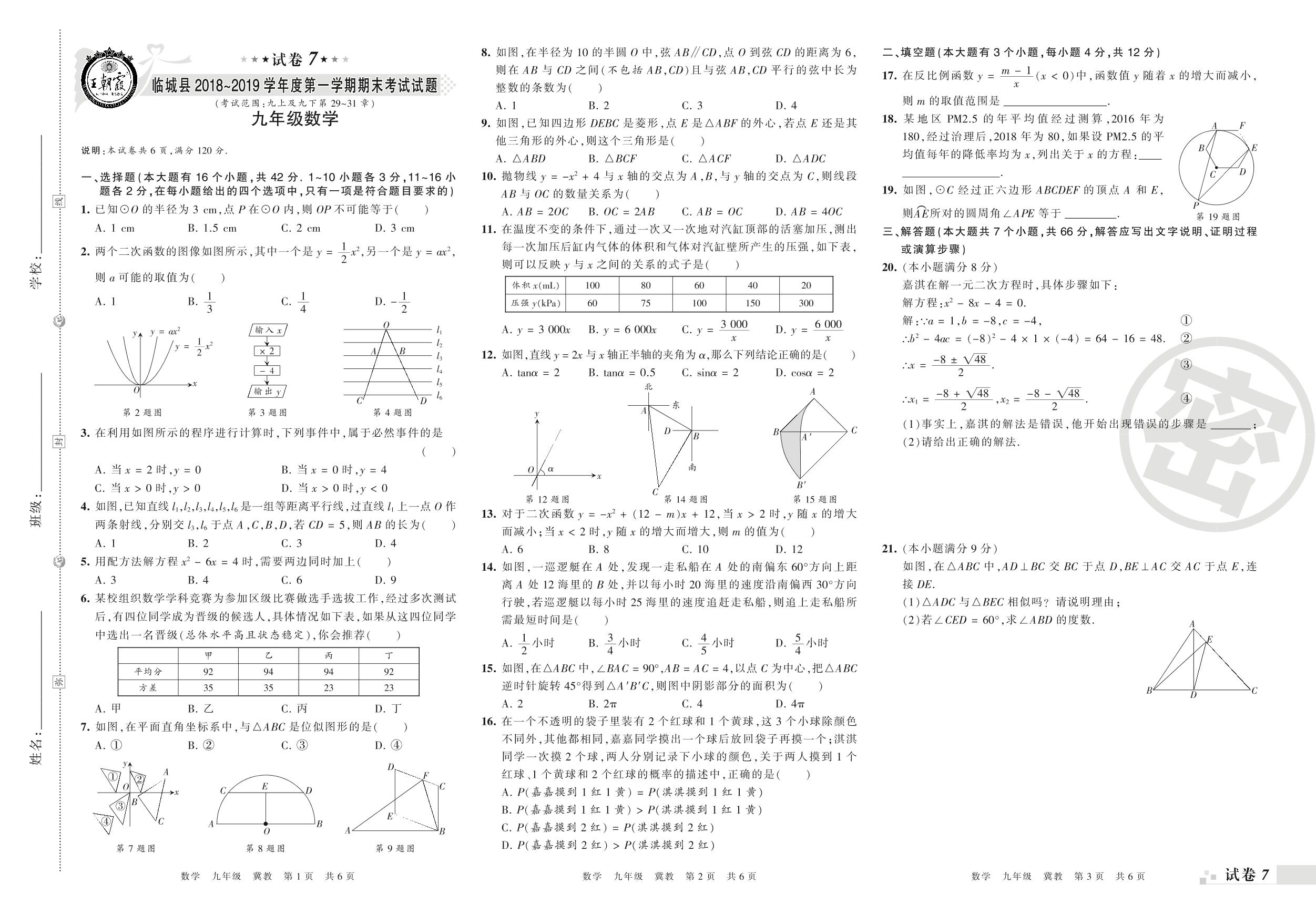 2018-2019学年第一学期邢台市临城县九年级数学试卷(冀教版)【7】