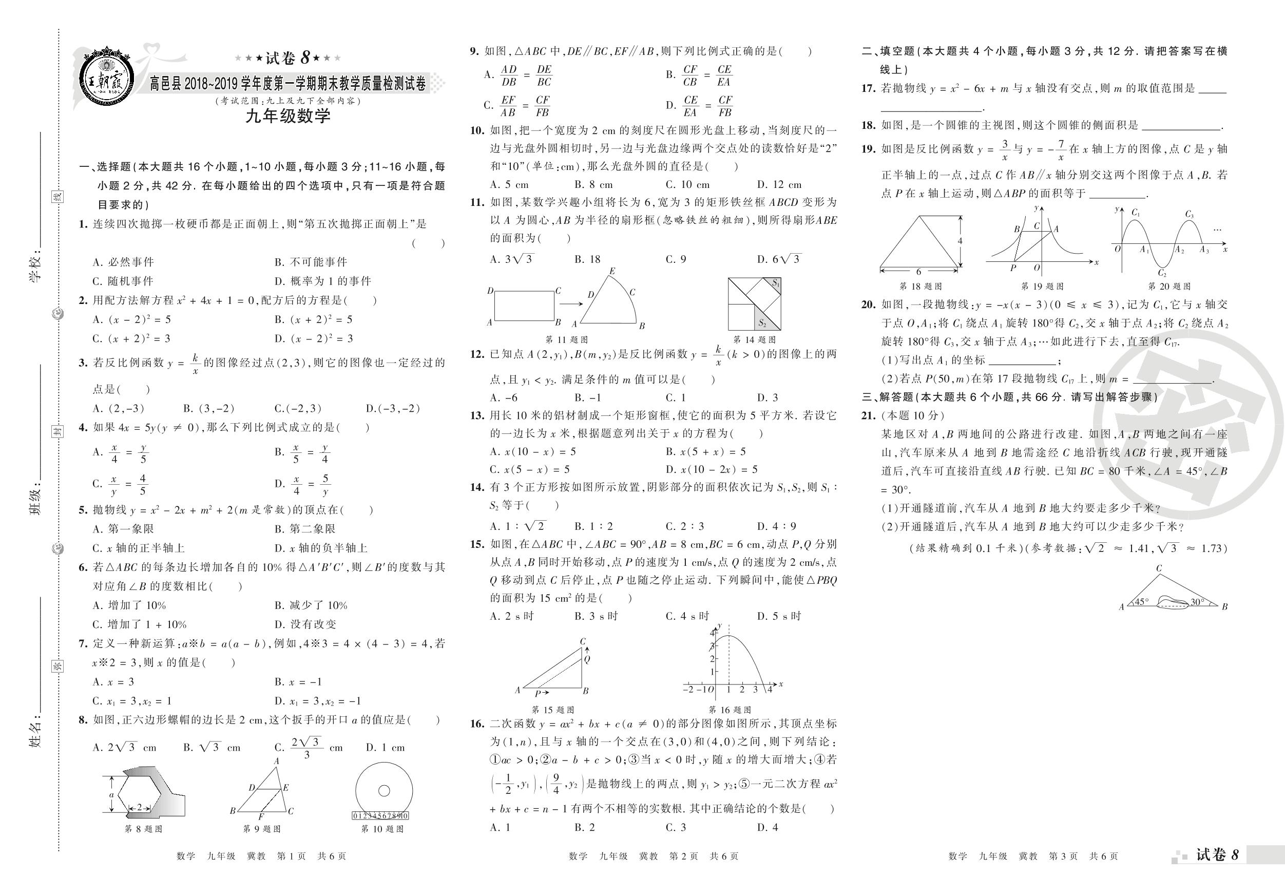 2018-2019学年第一学期石家庄市高邑县九年级数学试卷(冀教版)【8】