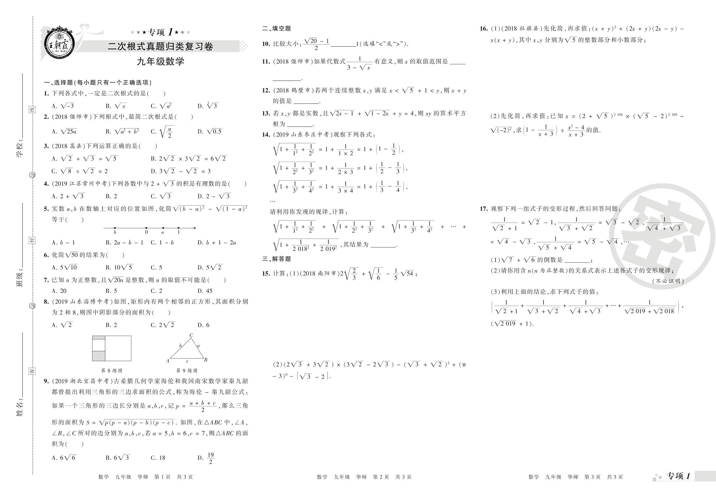 王朝霞期末专项——二次根式、一元二次方程真题归类复习九年级上册数学(华师版)_R210806171913【0】