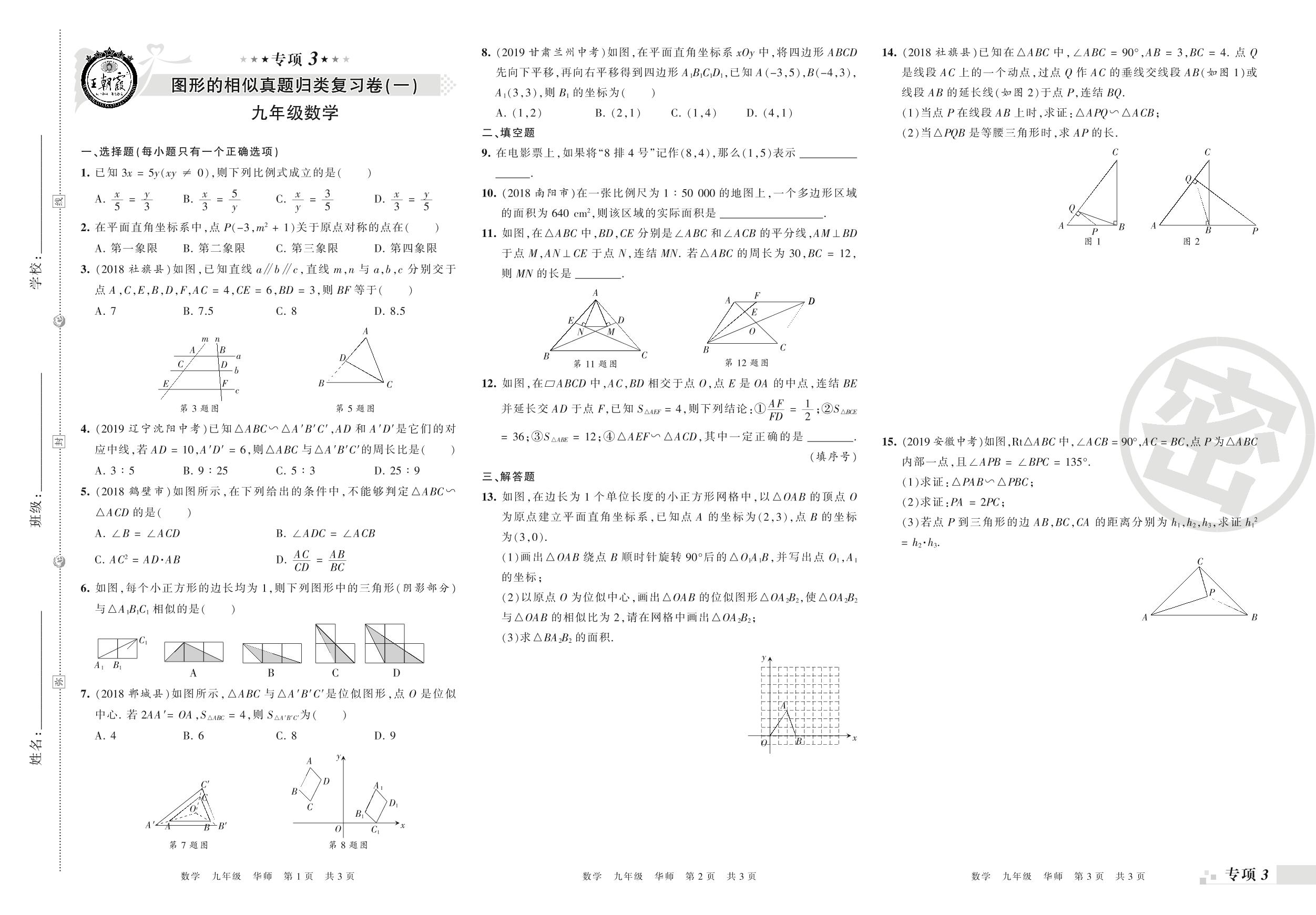王朝霞期末专项卷——图形的相似真题归类复习九年级上册数学(华师版)_R210806171921【0】