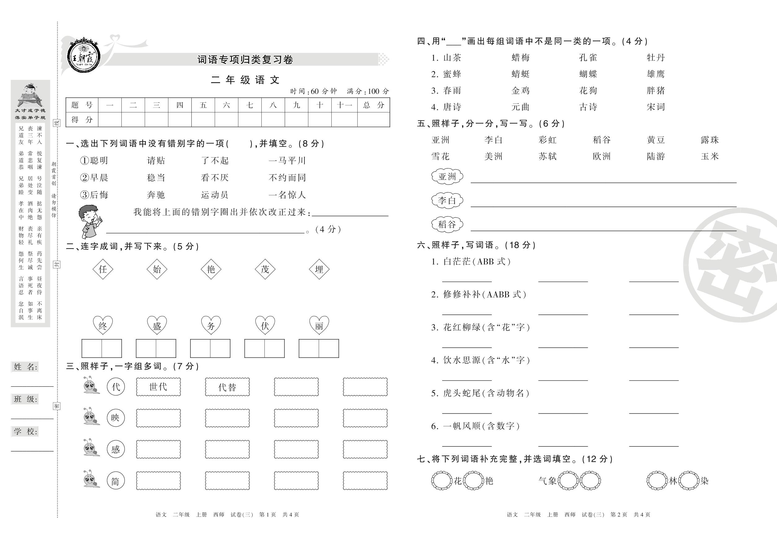 王朝霞期末专项卷二年级上册语文(西师版)_R21080175959【3】
