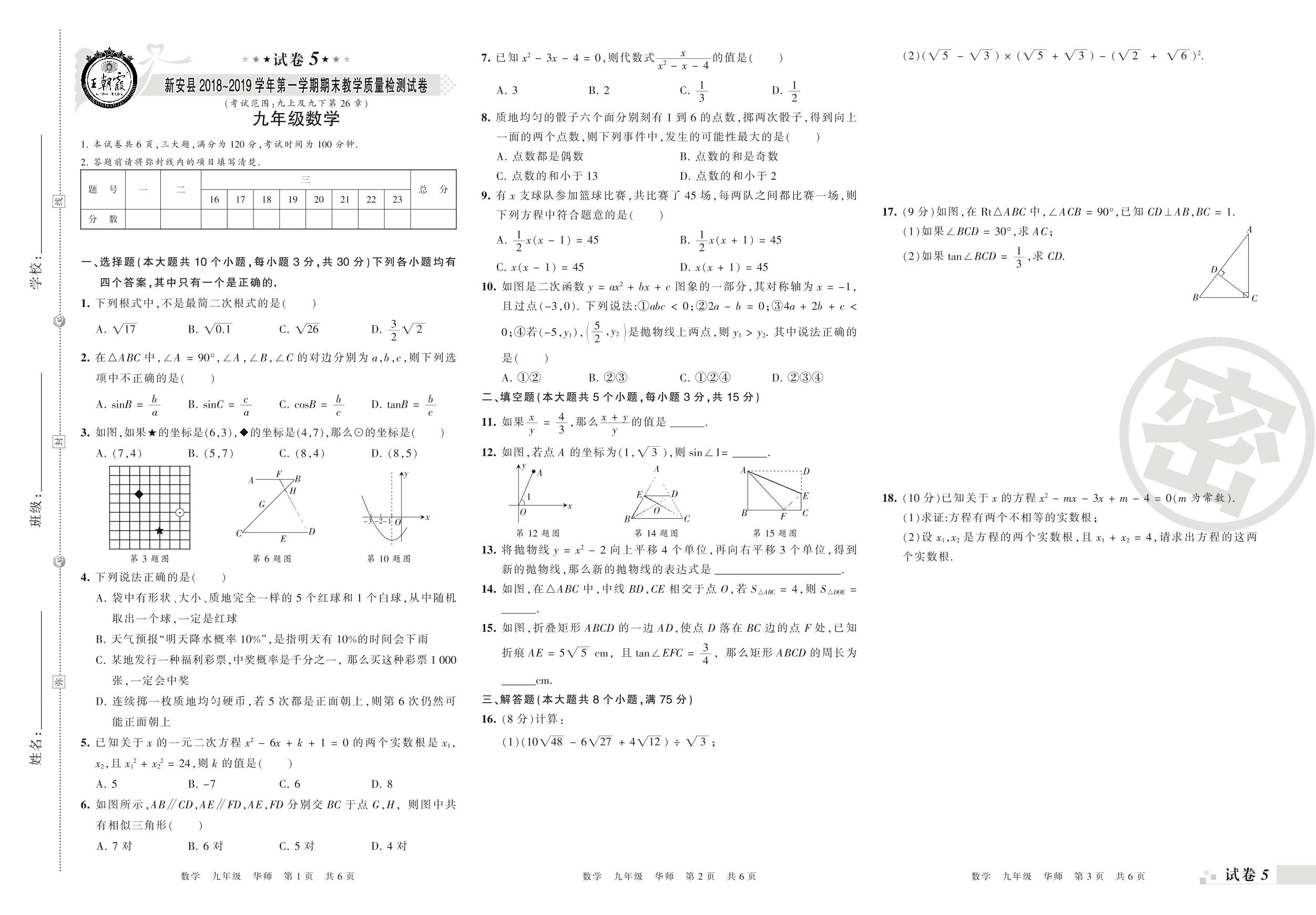 2018-2019学年第一学期洛阳市新安县九年级数学试卷(华师版)【5】