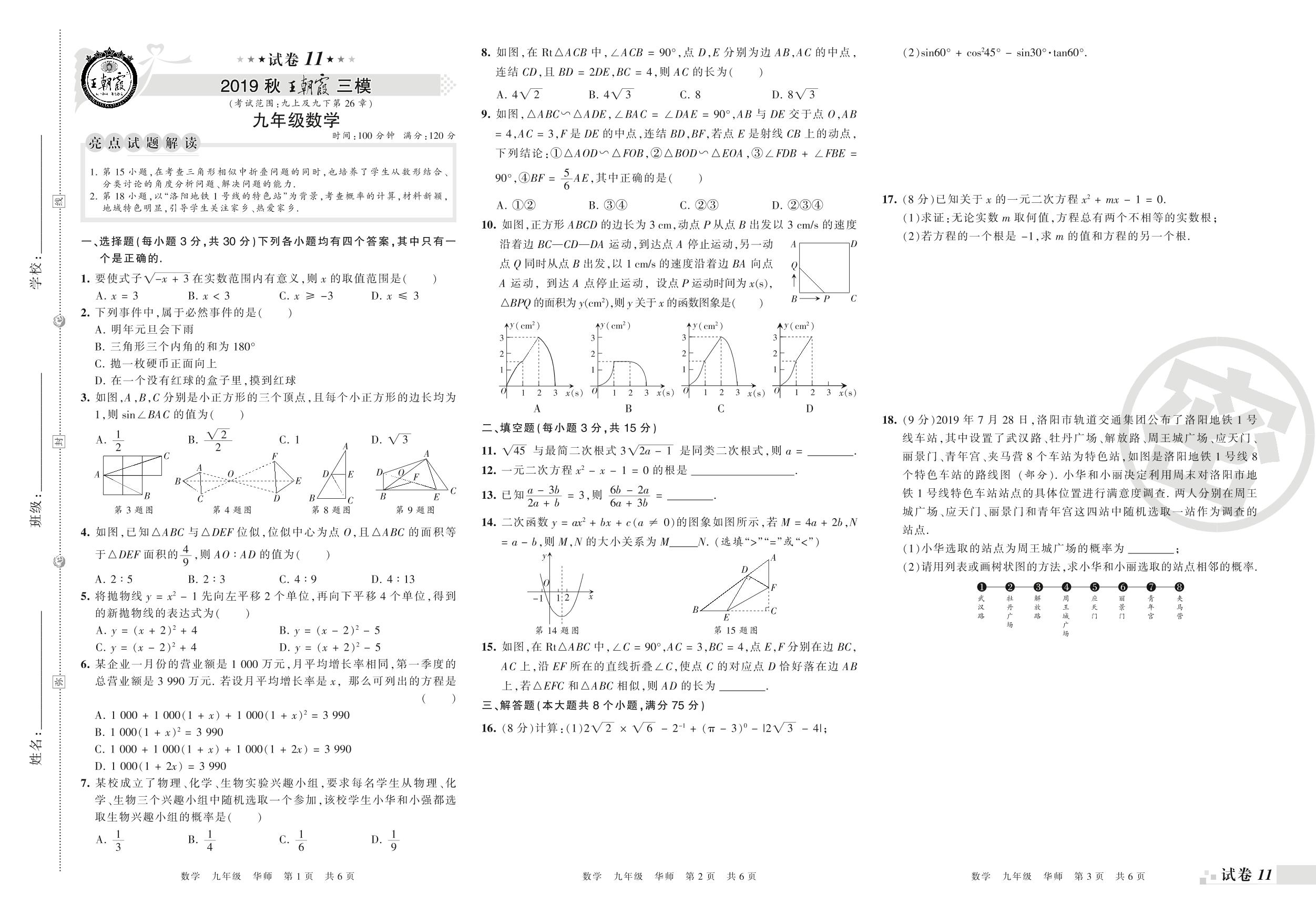 王朝霞期末模拟卷九年级上册数学(华师版)_R210806172026【11】