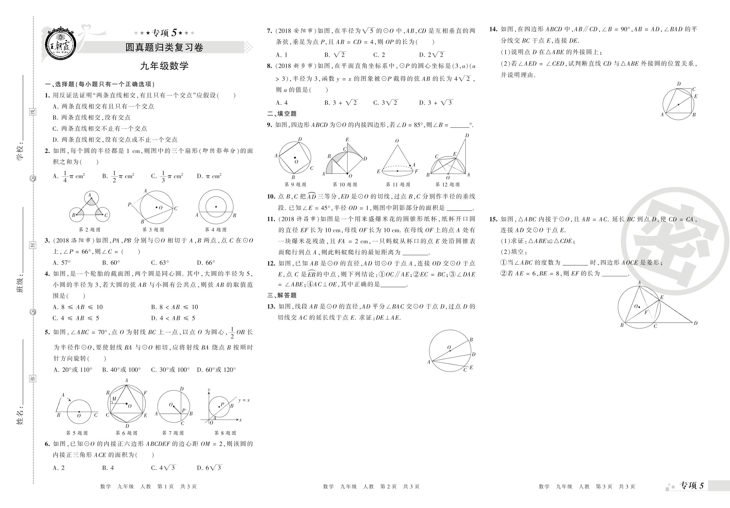 王朝霞期末专项卷——圆、概率初步真题归类复习九年级上册数学(人教版)_R210806172044【0】