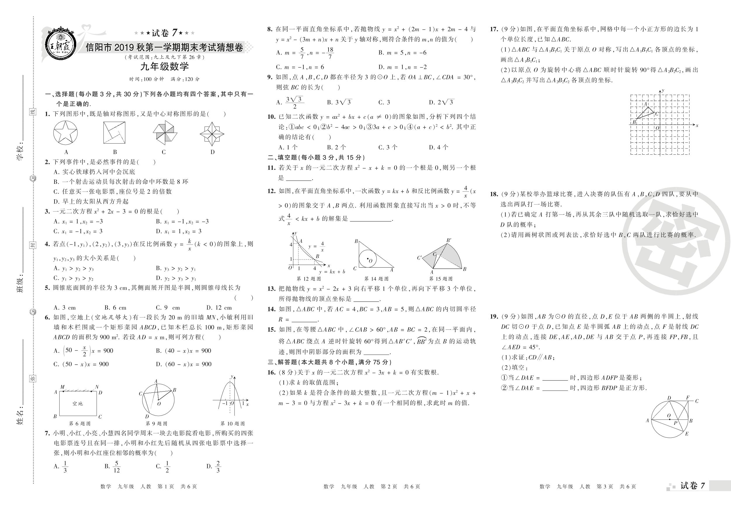2018-2019学年第一学期信阳市九年级数学试卷(人教版)【7】
